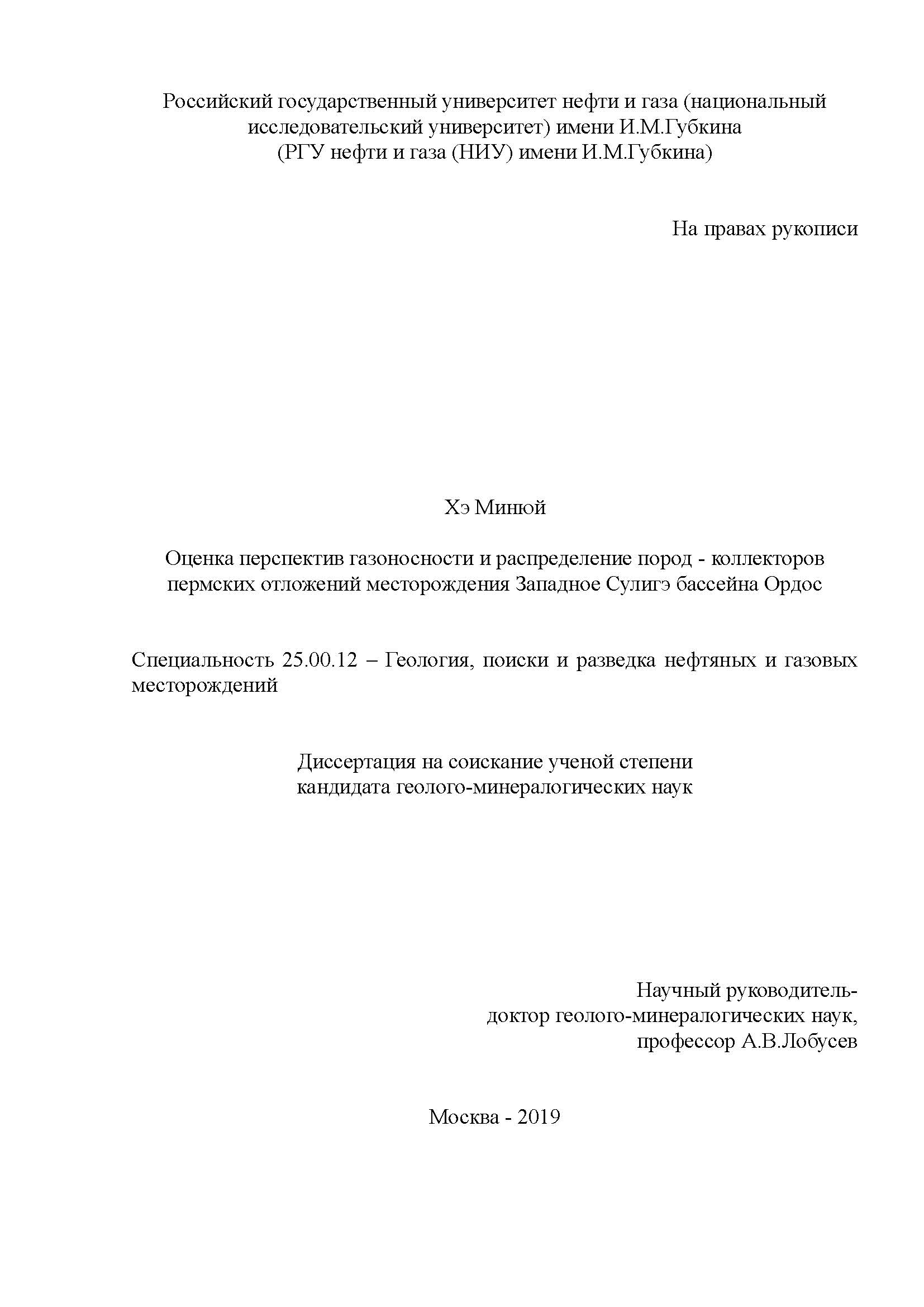 Оценка перспектив газоносности и распределение пород-коллекторов пермских отложений месторождения Западное Сулигэ бассейна Ордос