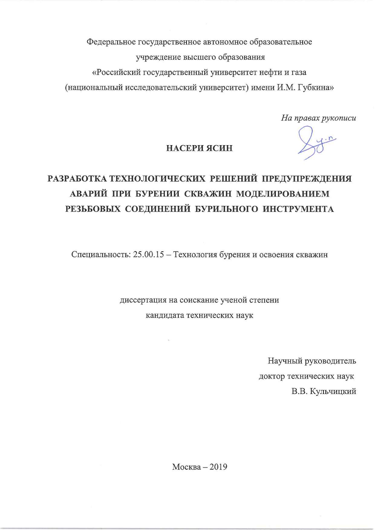 Разработка технологических решений предупреждения аварий при бурении скважин моделированием резьбовых соединений бурильного инструмента