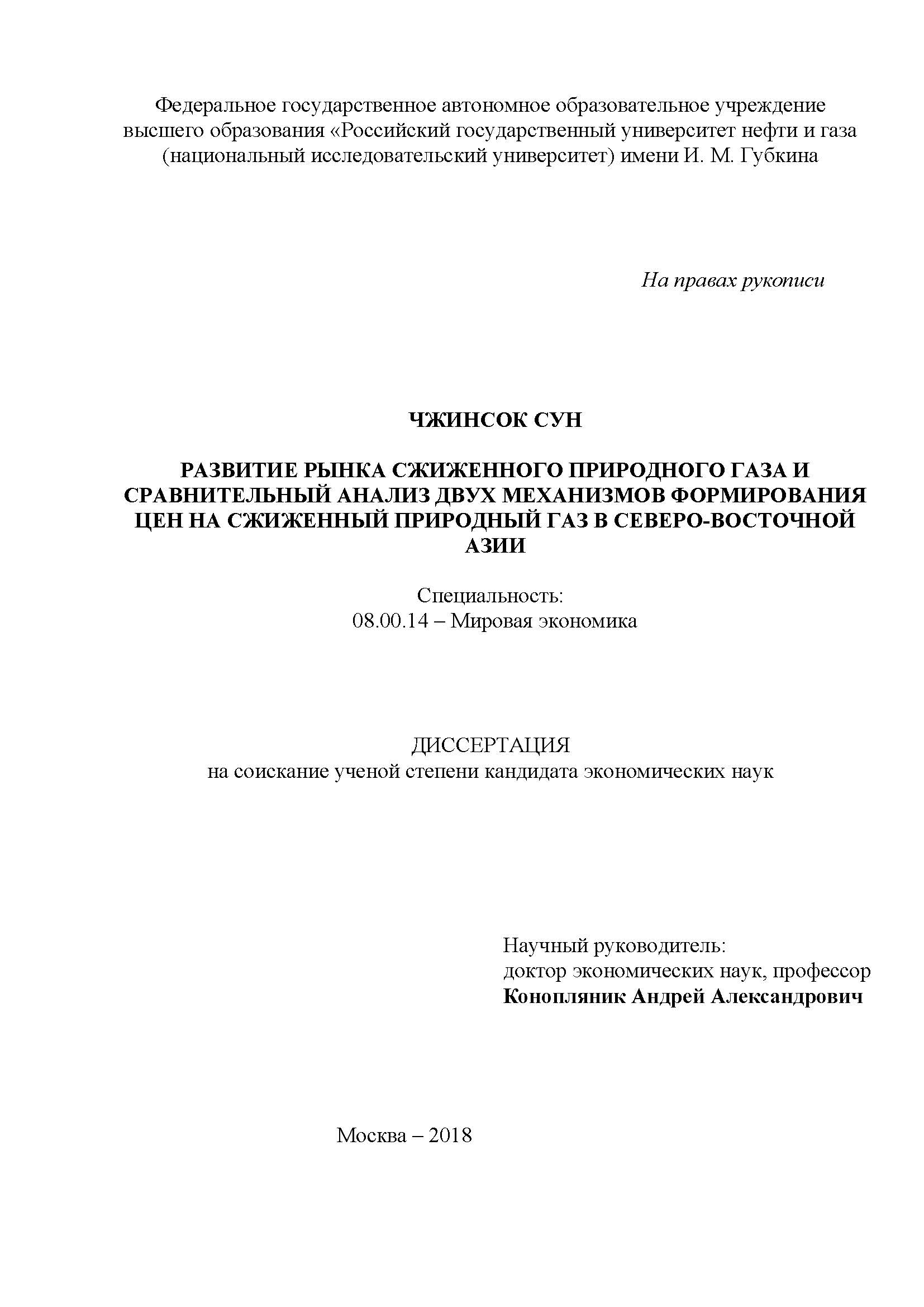Развитие рынка сжиженного природного газа и сравнительный анализ двух механизмов формирования цен на сжиженный природный газ в северо-восточной Азии