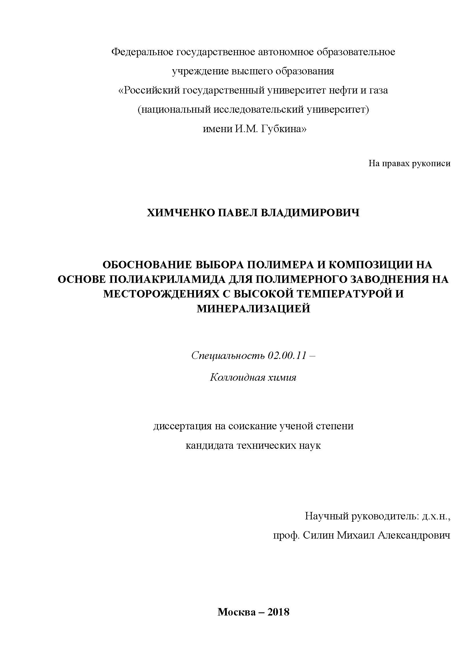 Обоснование выбора полимера и композиции на основе полиакриламида для полимерного заводнения на месторождениях с высокой температурой и минерализацией