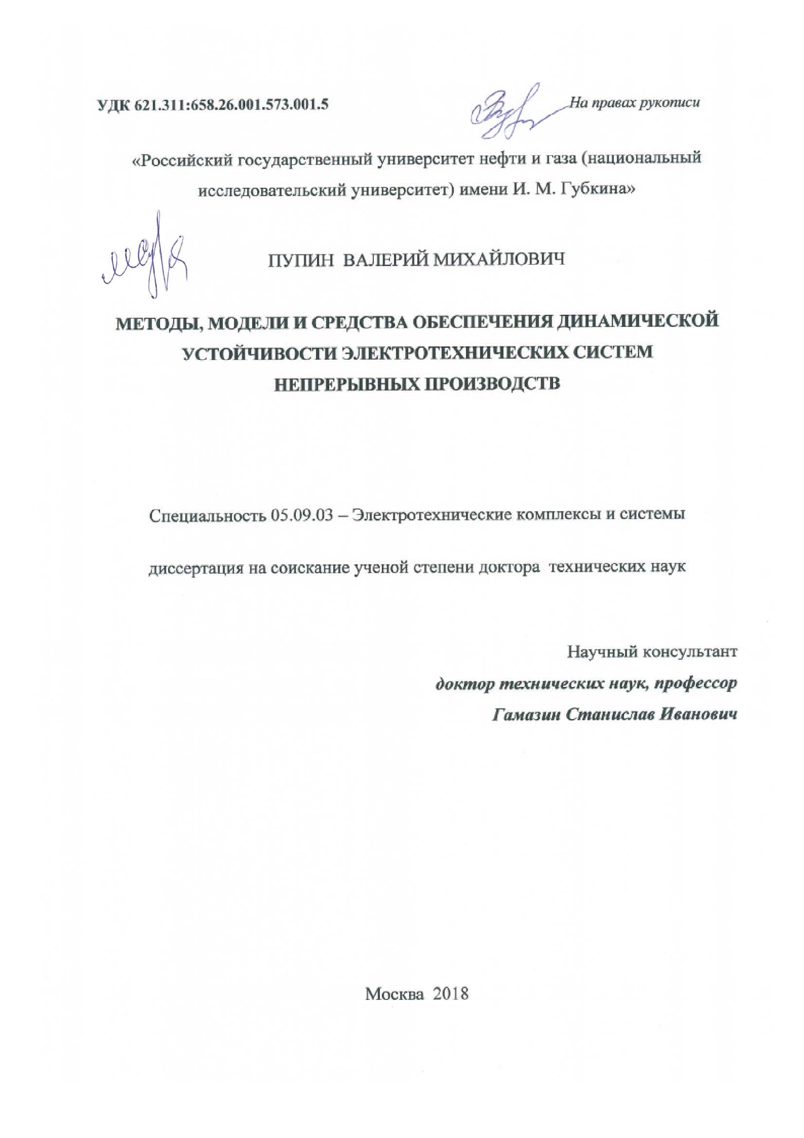Методы, модели и средства обеспечения динамической устойчивости электротехнических систем непрерывных производств
