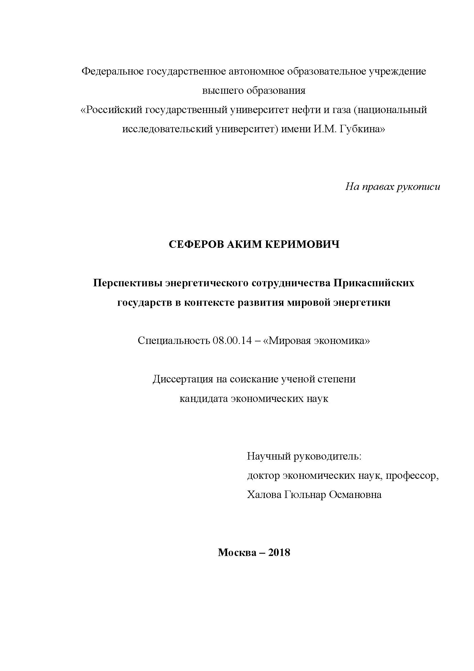 Перспективы энергетического сотрудничества прикаспийских государств в контексте развития мировой энергетики
