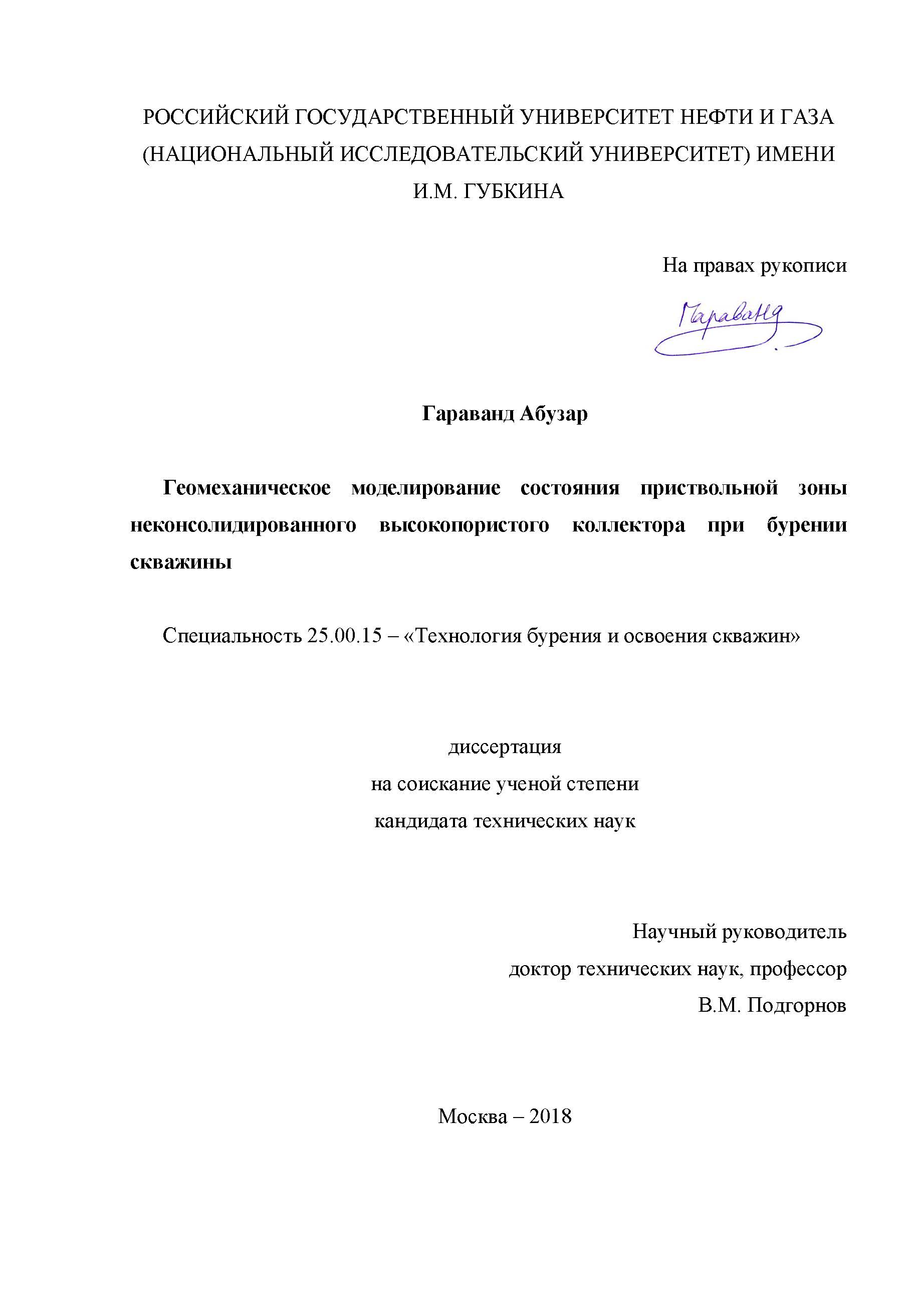Геомеханическое моделирование состояния приствольной зоны неконсолидированного высокопористого коллектора при бурении скважины