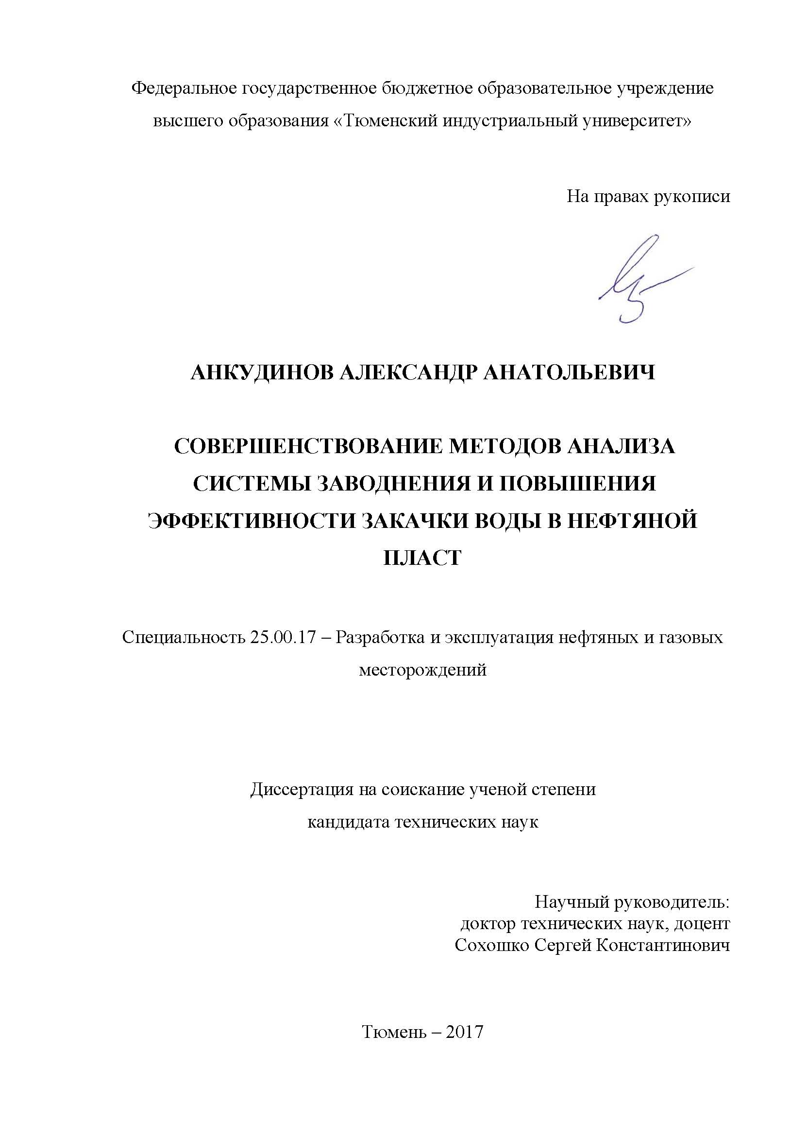 Совершенствование методов анализа системы заводнения и повышения эффективности закачки воды в нефтяной пласт