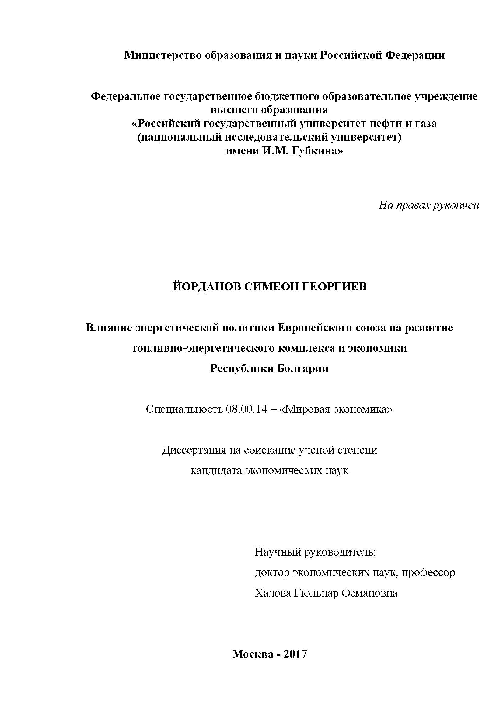 Влияние энергетической политики Европейского союза на развитие топливно-энергетического комплекса и экономики Республики Болгарии