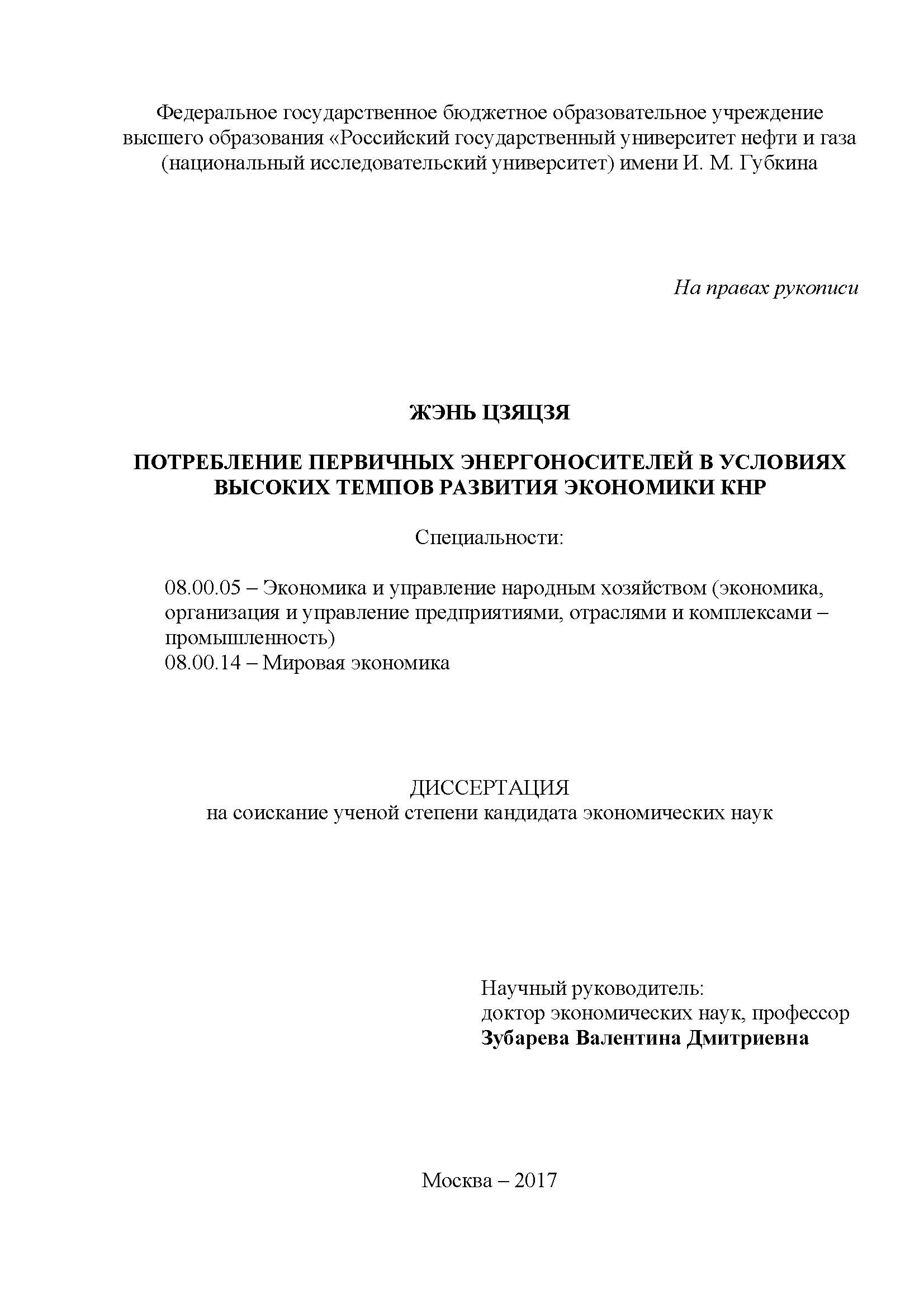 Потребление первичных энергоносителей в условиях высоких темпов развития экономики КНР