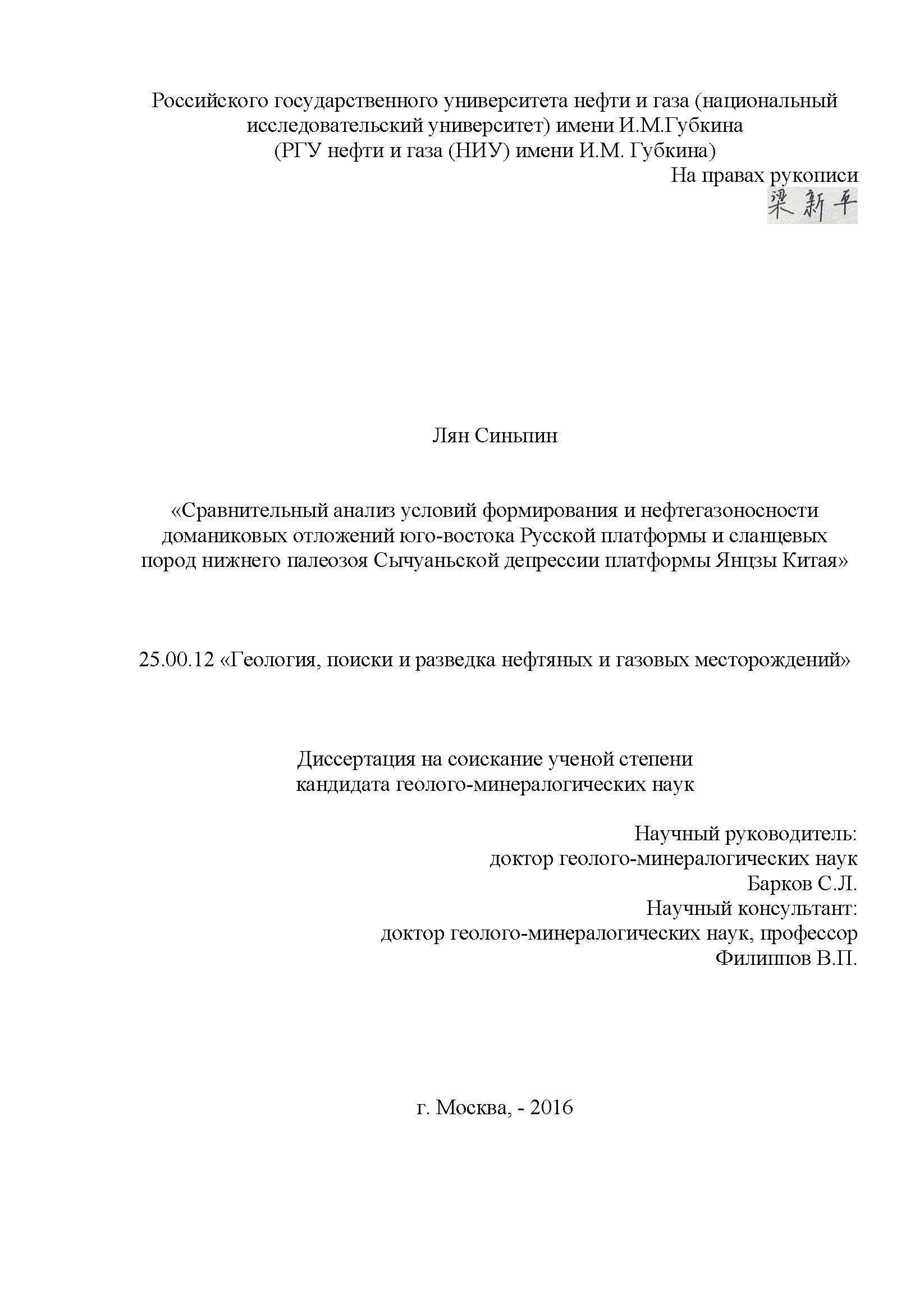 Сравнительный анализ условий формирования и нефтегазоносности доманиковых отложений юго-востока Русской платформы и сланцевых пород нижнего палеозоя Сычуаньской депрессии платформы Янцзы Китая