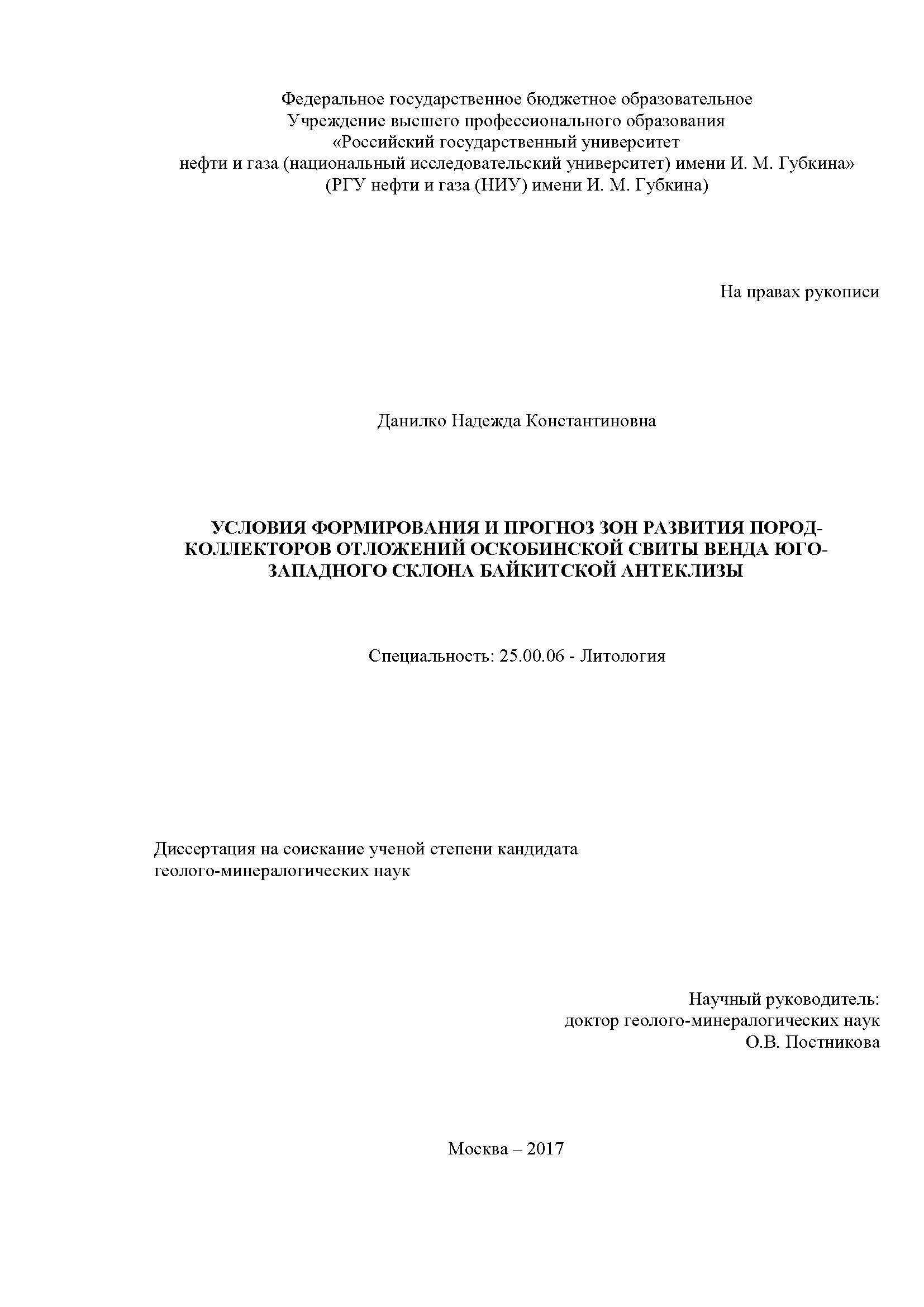 Условия формирования и прогноз зон развития пород-коллекторов отложений оскобинской свиты венда юго-западного склона Байкитской антеклизы