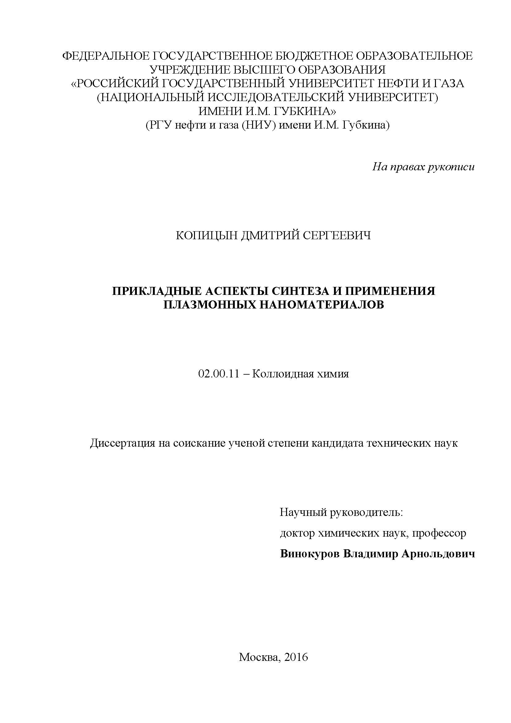 Прикладные аспекты синтеза и применения плазмонных наноматериалов