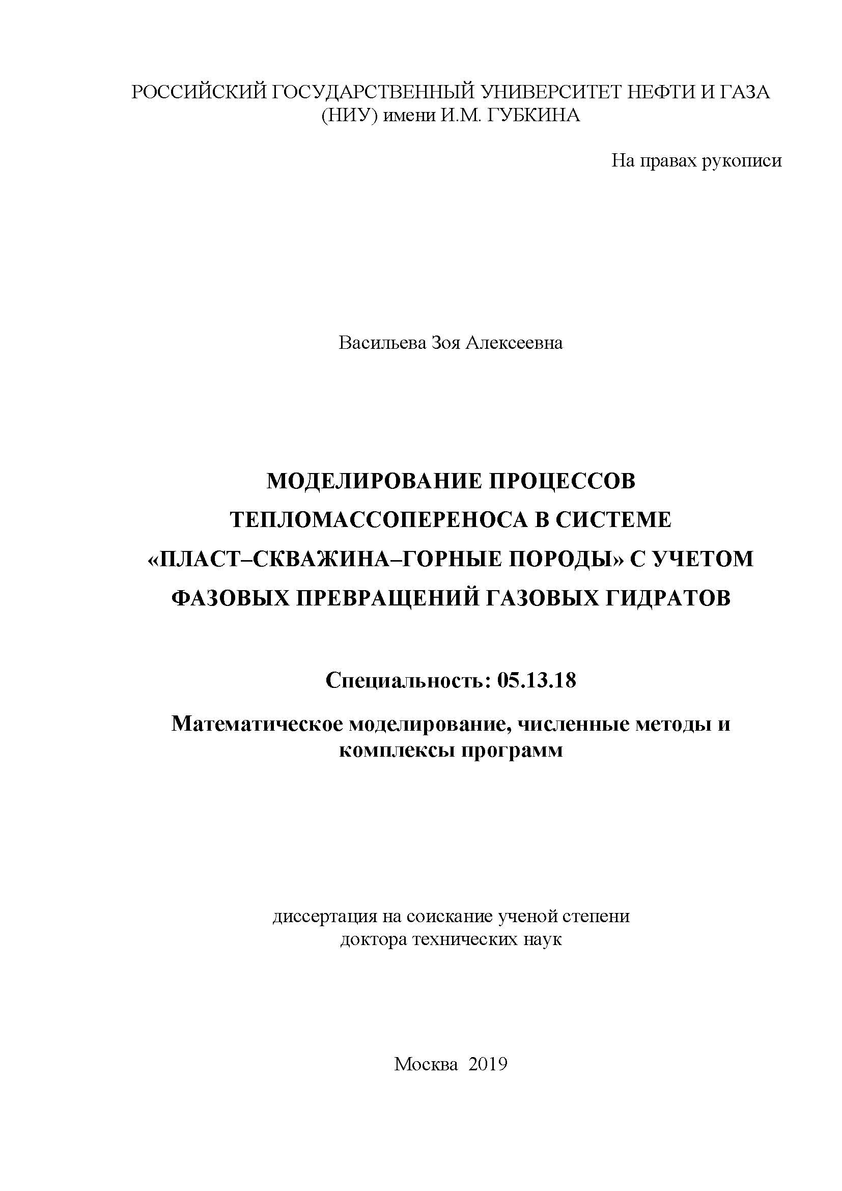 Моделирование процессов тепломассопереноса в системе "Пласт-скважина-горные породы" с учетом фазовых превращений газовых гидратов