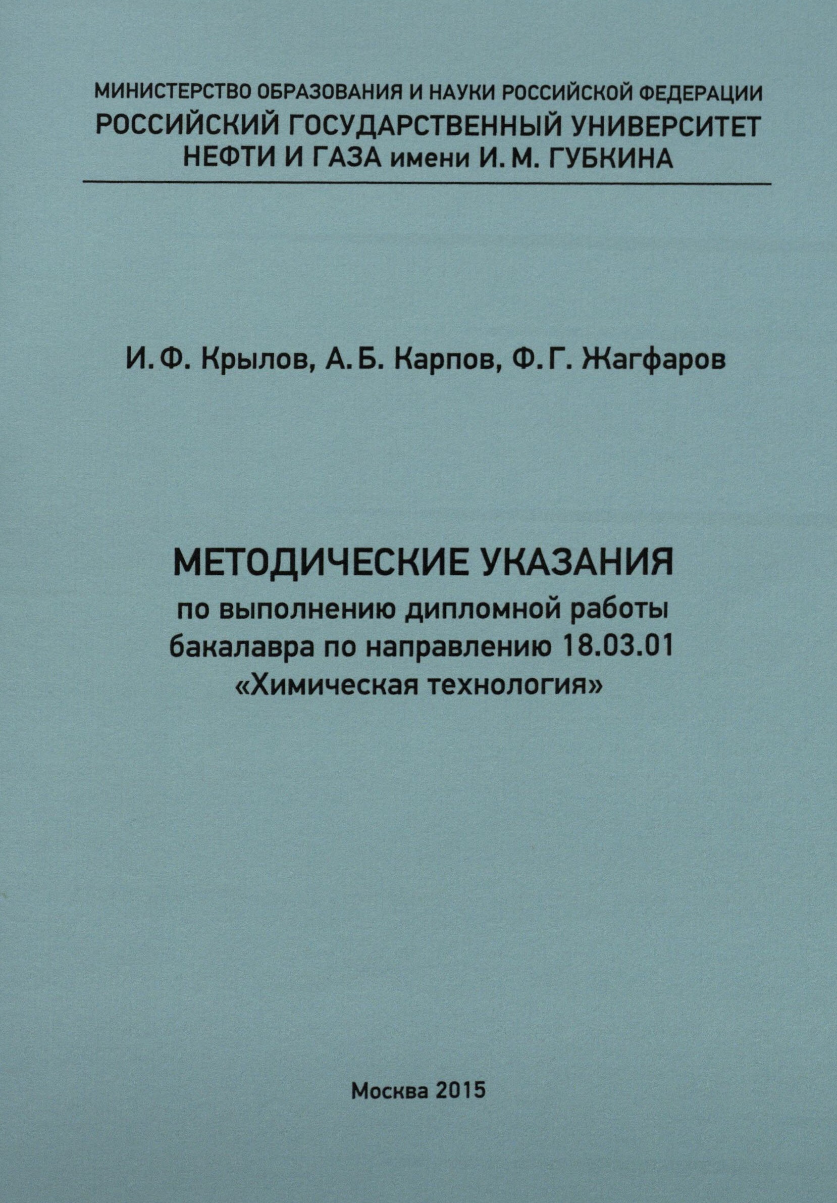 Методические указания по выполнению дипломной работы бакалавра по направлению 18.03.01 «Химическая технология»