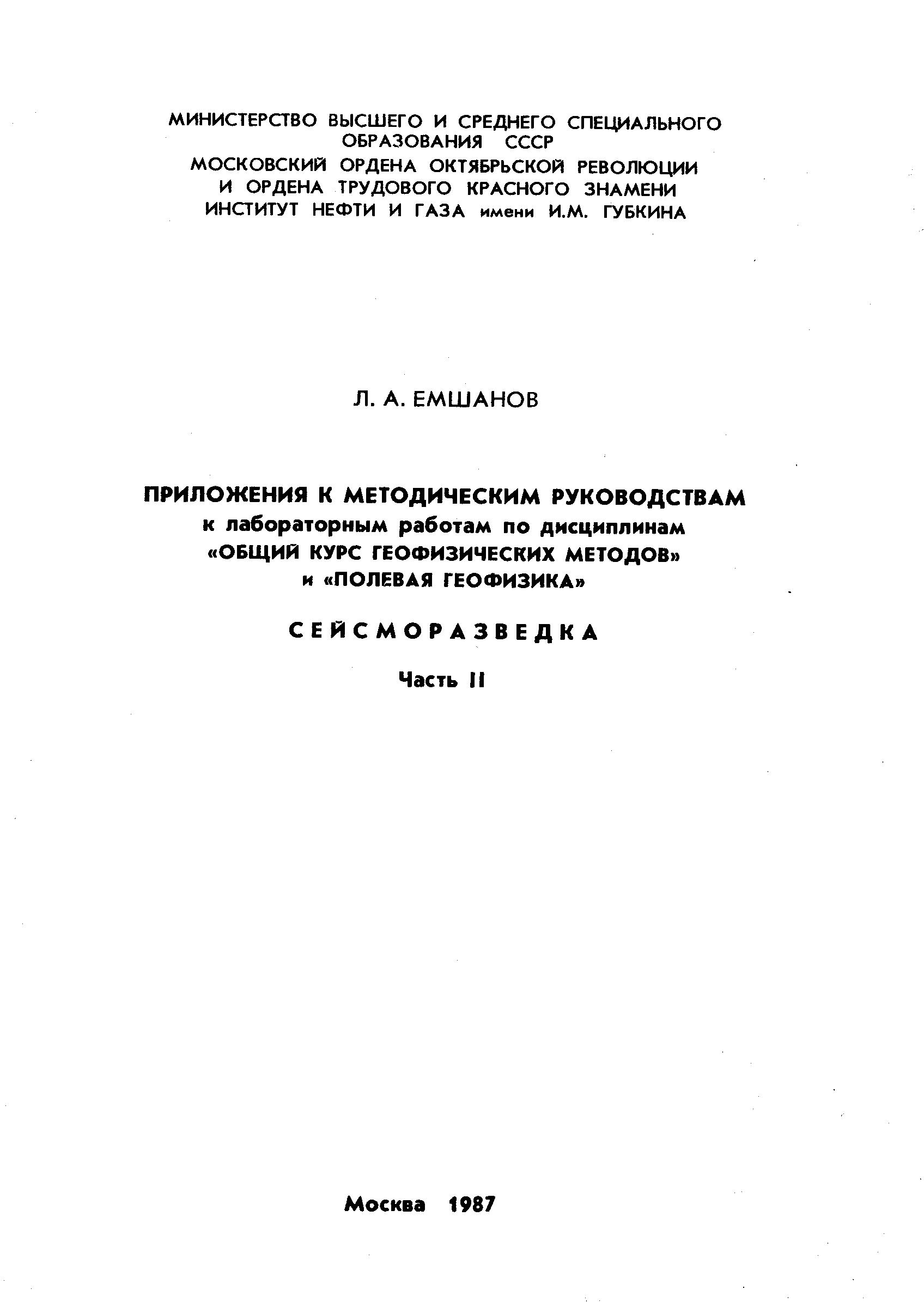 Приложения к методическому руководству к лабораторным работам по дисциплинам "Общий курс геофизических методов" и "Полевая геофизика". Сейсморазведка. Ч. 2