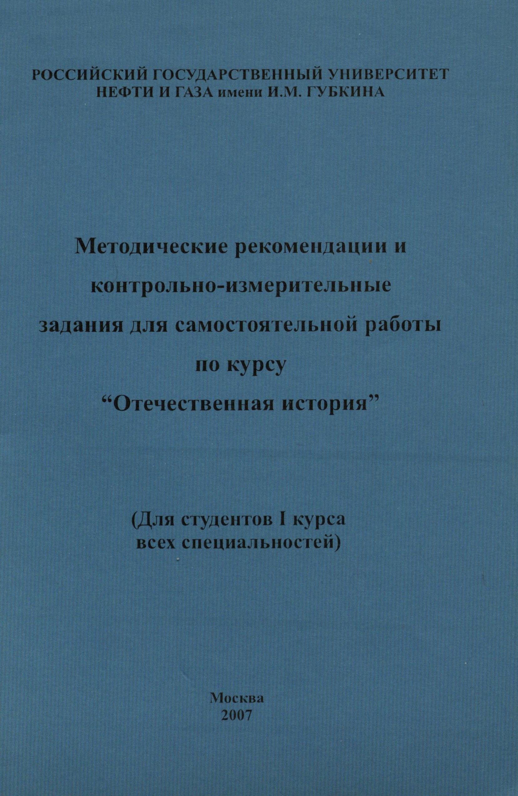 Методические рекомендации и контрольно-измерительные задания для самостоятельной работы по курсу "Отечественная история"