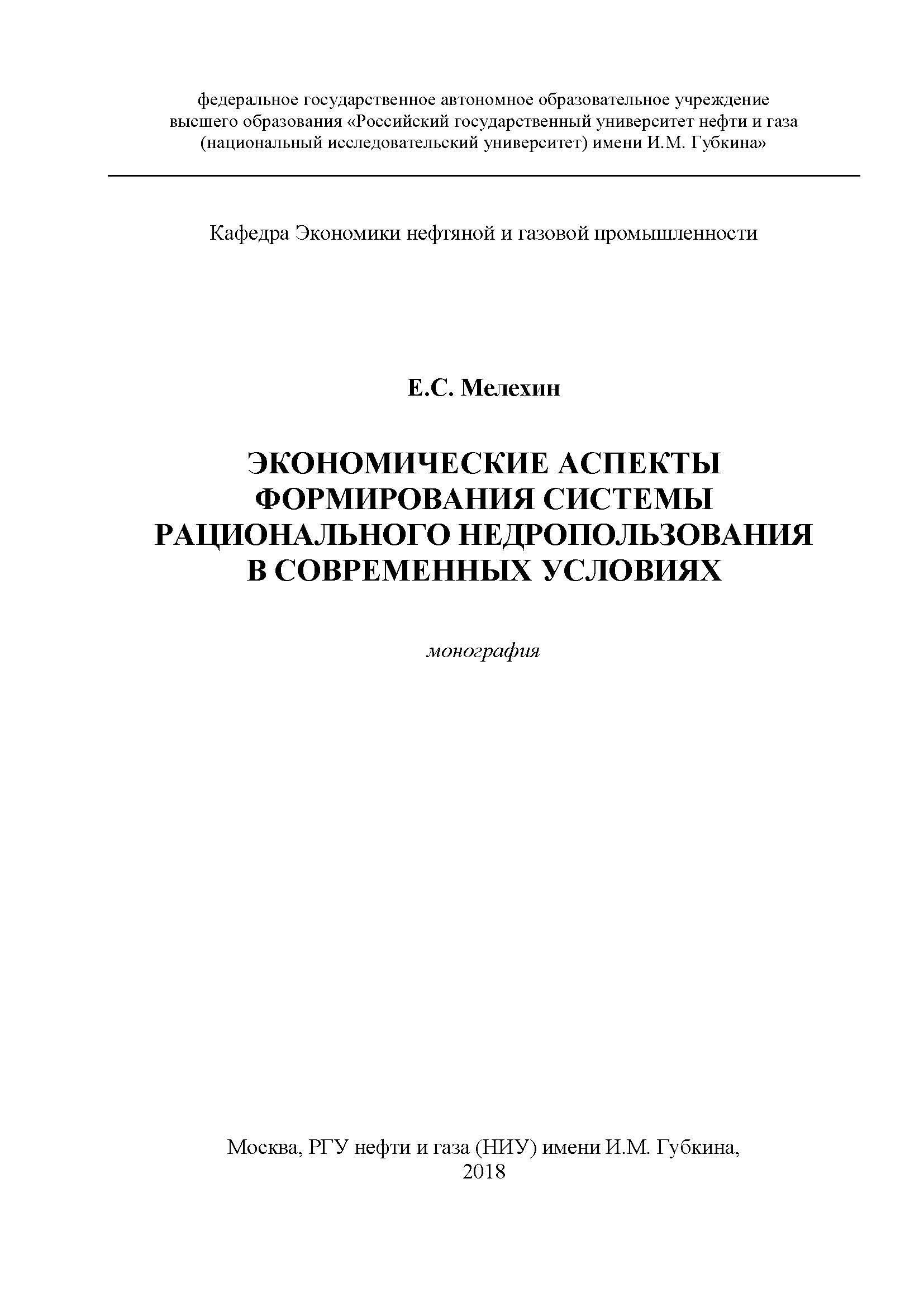 Экономические аспекты формирования системы рационального недропользования в современных условиях
