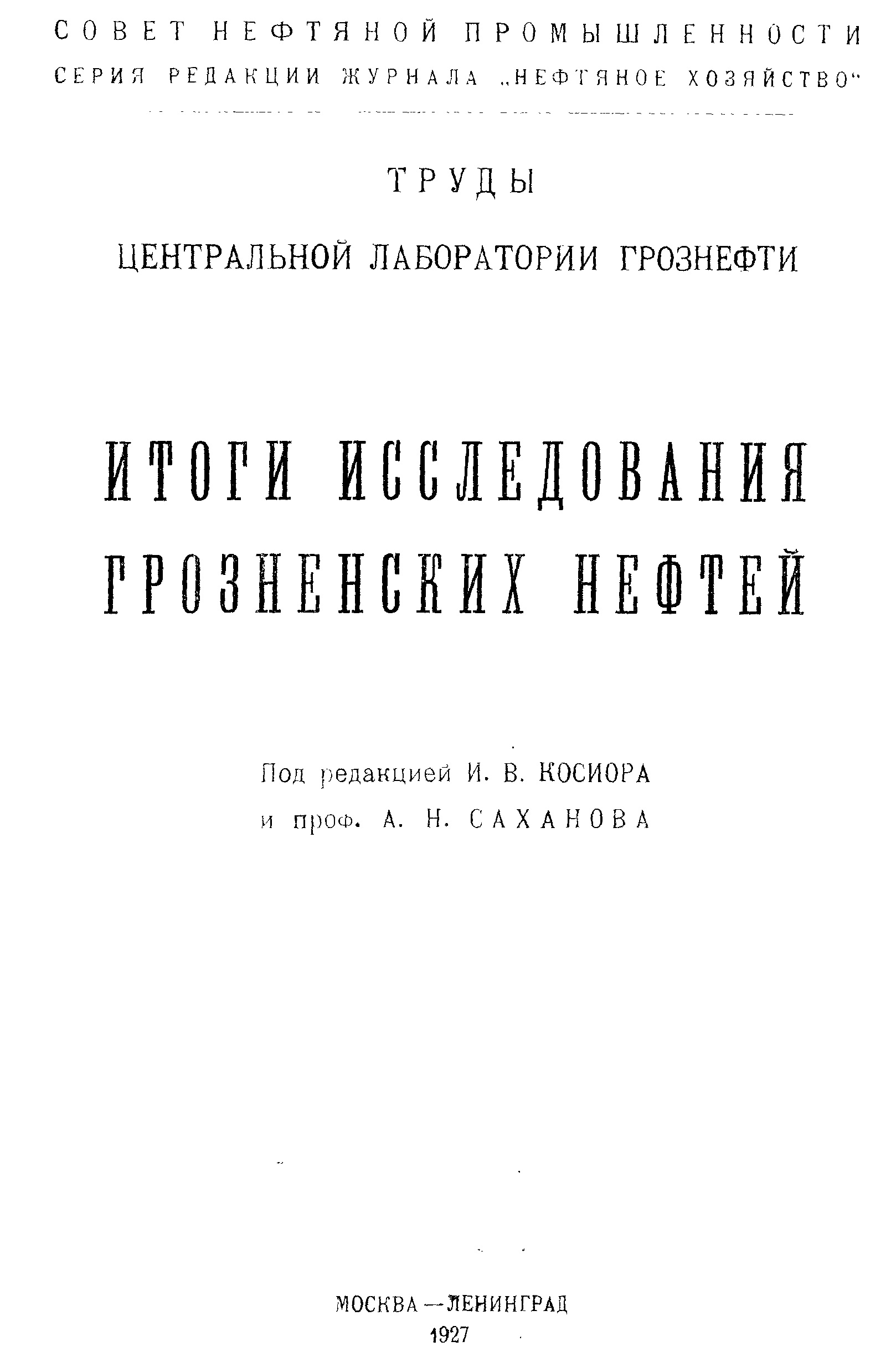 Итоги исследования грозненских нефтей