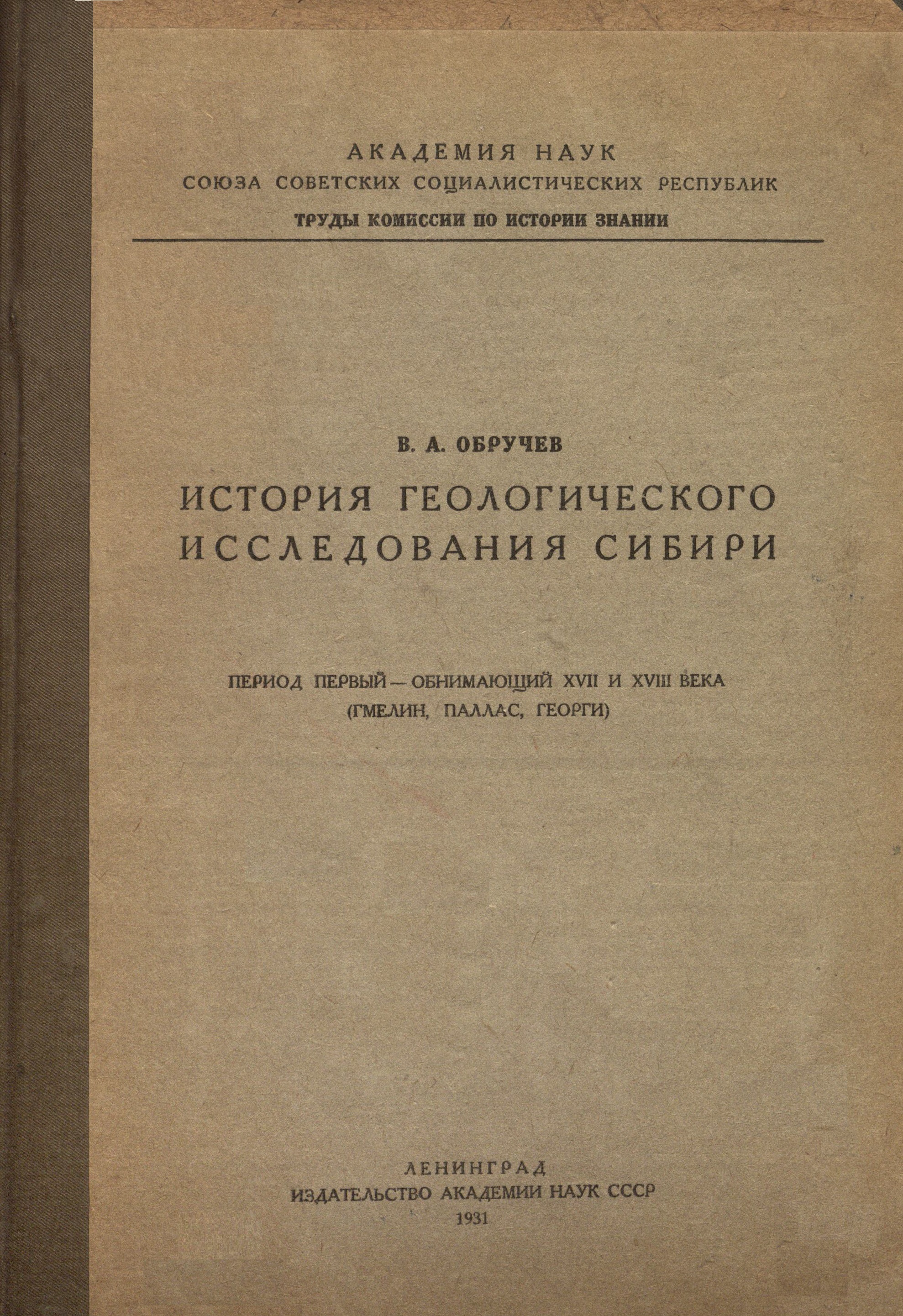 История геологического исследования Сибири. Период первый - обнимающий 17 и 18 века (Гмелин, Паллас, Георги)