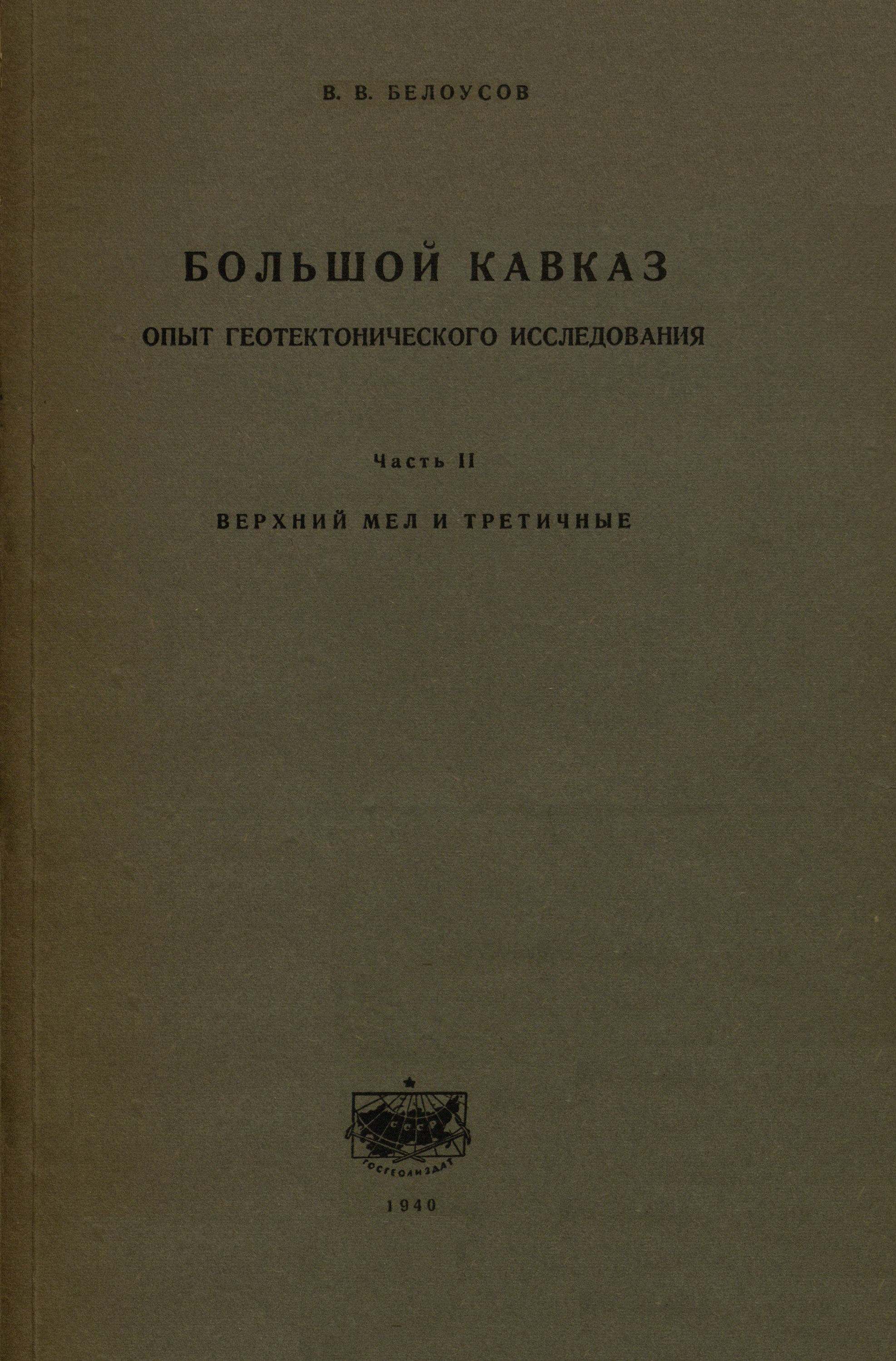 Большой Кавказ. Опыт геотектонического исследования. Вып. 121. Ч. 2. Верхний мел и третичные