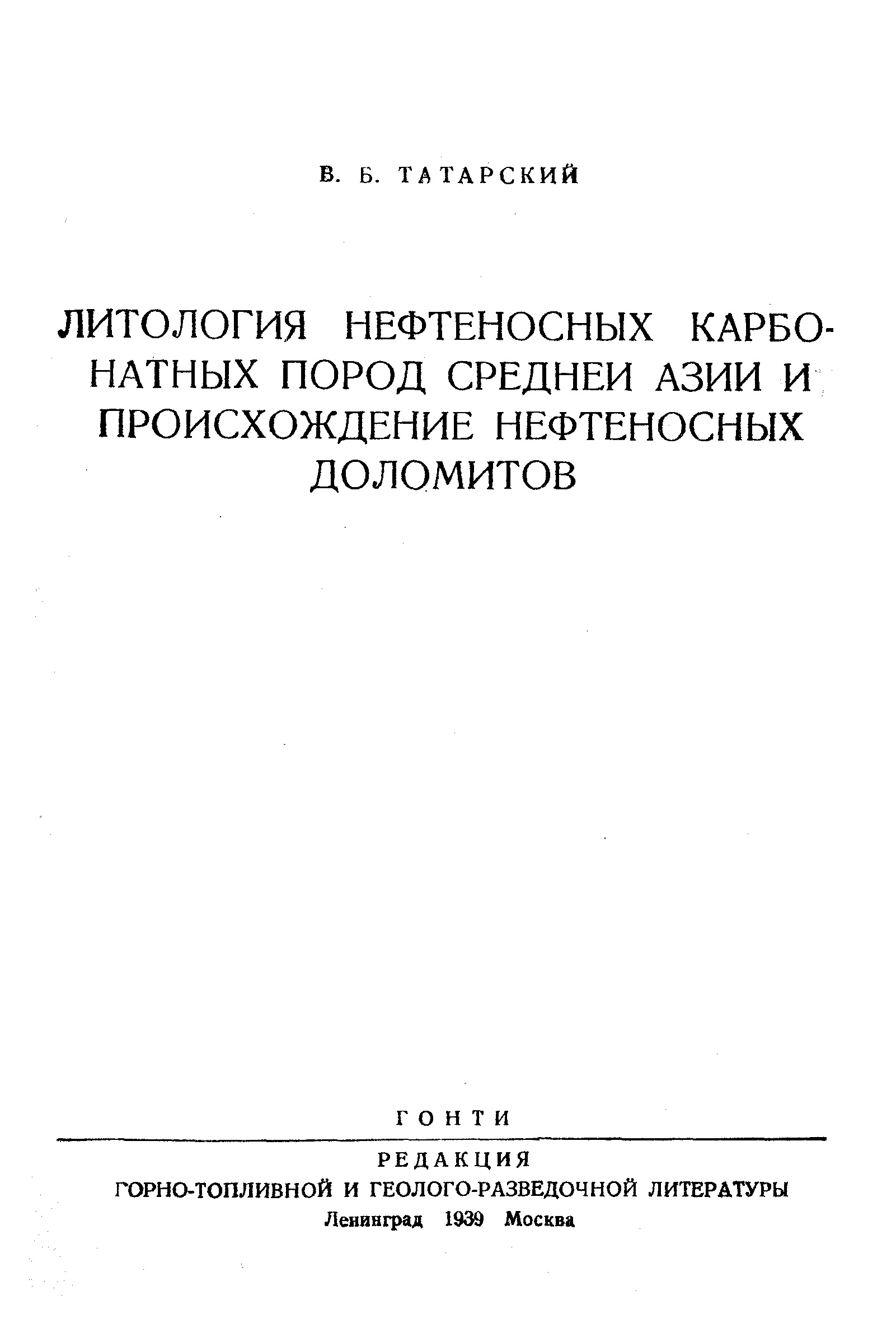 Литология нефтеносных карбонатных пород Средней Азии и происхождение нефтеносных доломитов