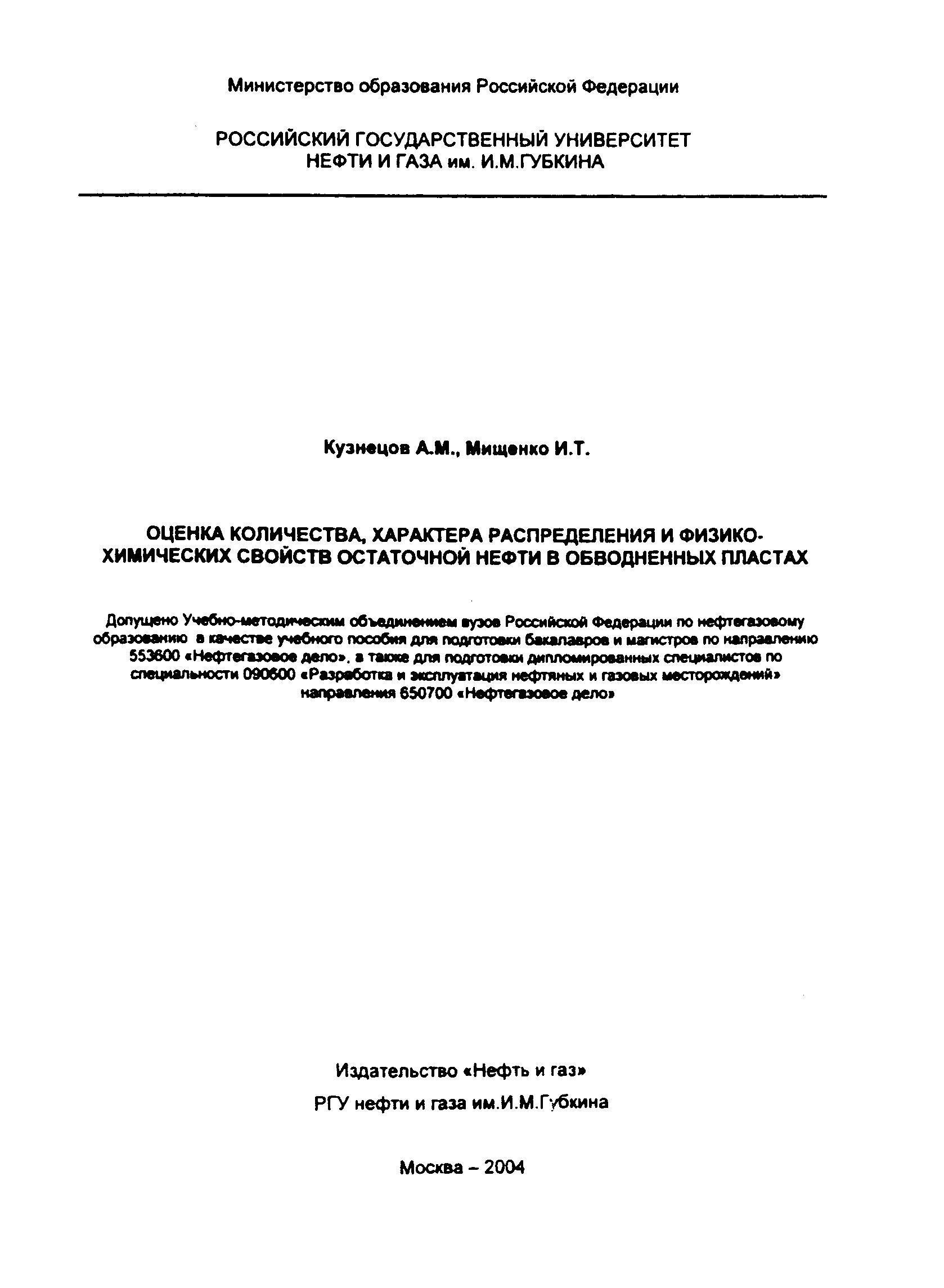Оценка количества, характера распределения и физико-химических свойств остаточной нефти в обводненных пластах