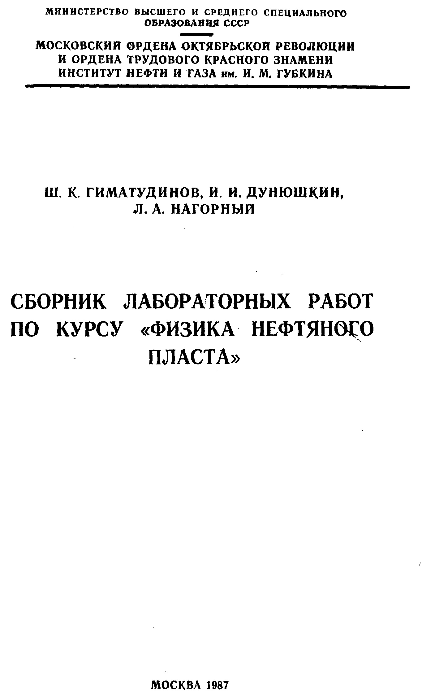 Сборник лабораторных работ по курсу "Физика нефтяного пласта"