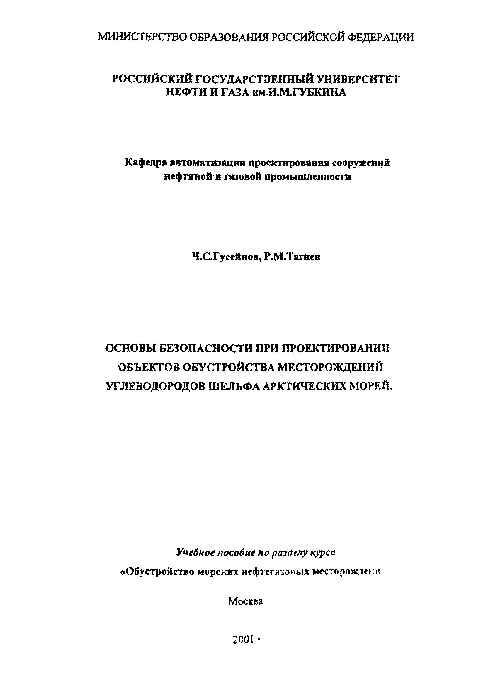 Основы безопасности при проектировании объектов обустройства месторождений углеводородов шельфа арктических морей