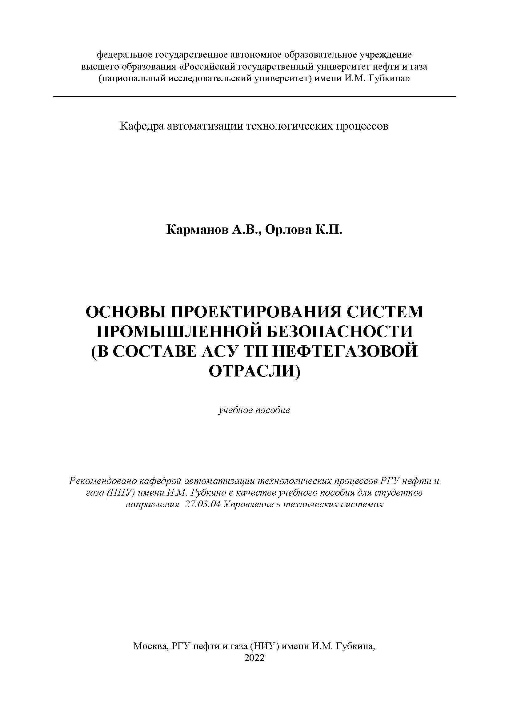 Основы проектирования систем промышленной безопасности (в составе АСУ ТП нефтегазовой отрасли)