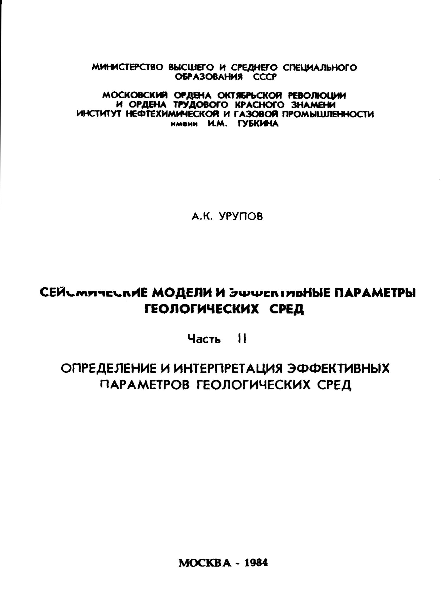 Сейсмические модели и эффективные параметры геологических сред. Ч. 2. Определение и интерпретация эффективных параметров геологических сред