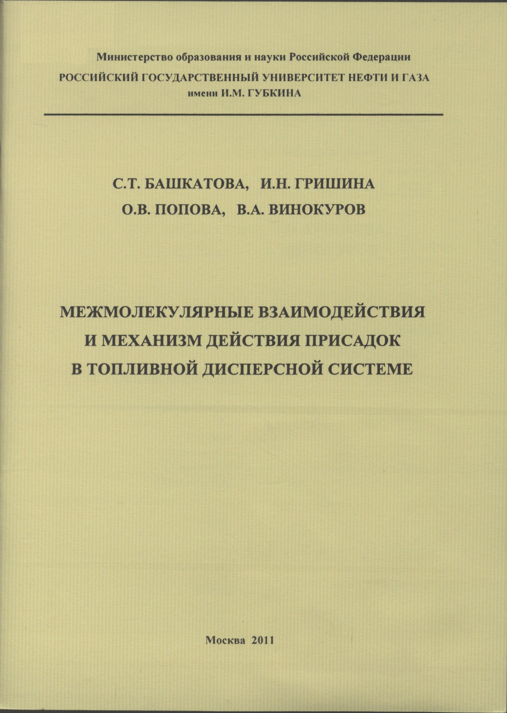 Межмолекулярные взаимодействия и механизм действия присадок в топливной дисперсной системе
