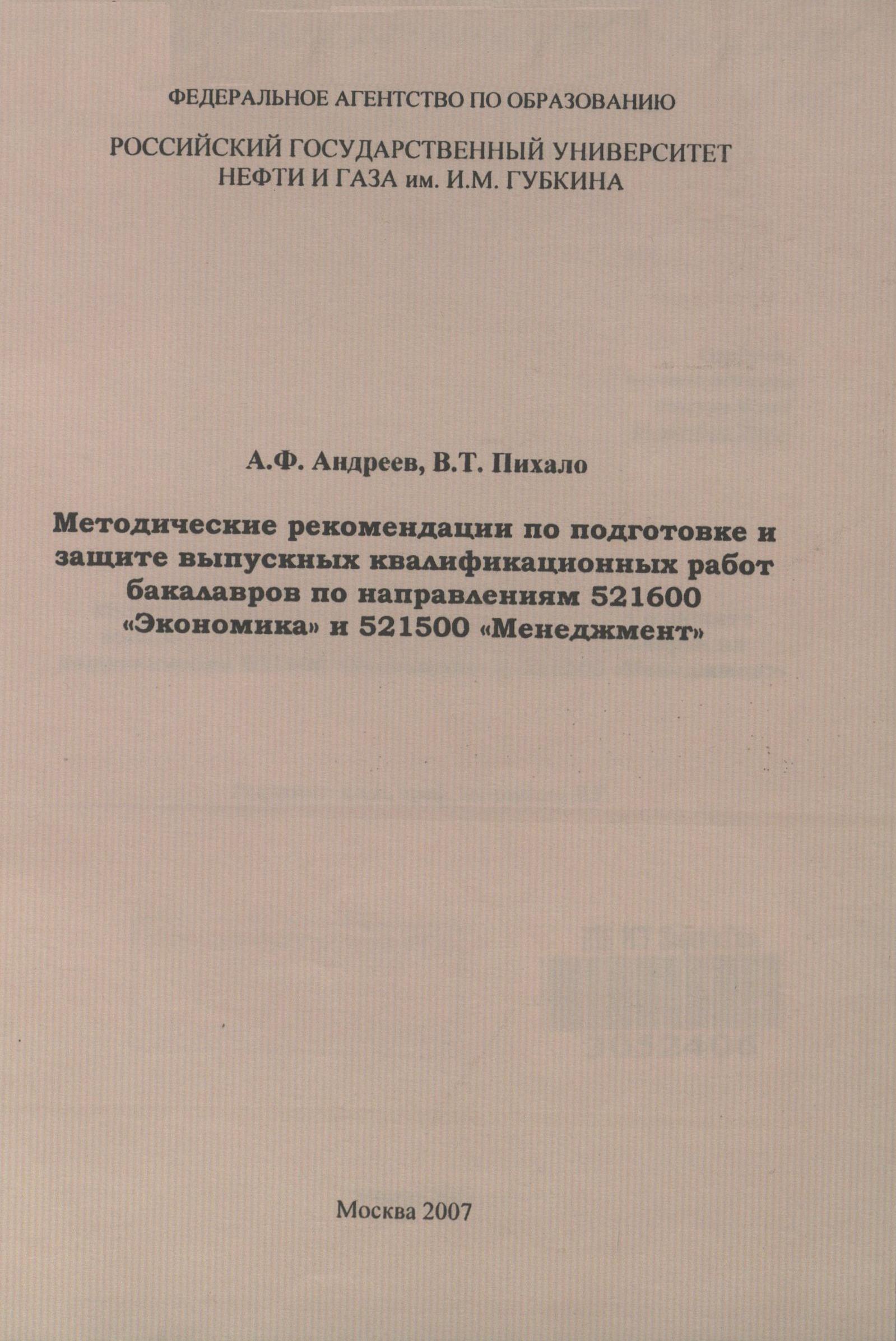 • "Методические рекомендации по подготовке и защите выпускных квалификационных работ бакалавров по направлениям 521600 "Экономика" и 521500 " Менеджмент"" (PDF - 0.24 Мб)