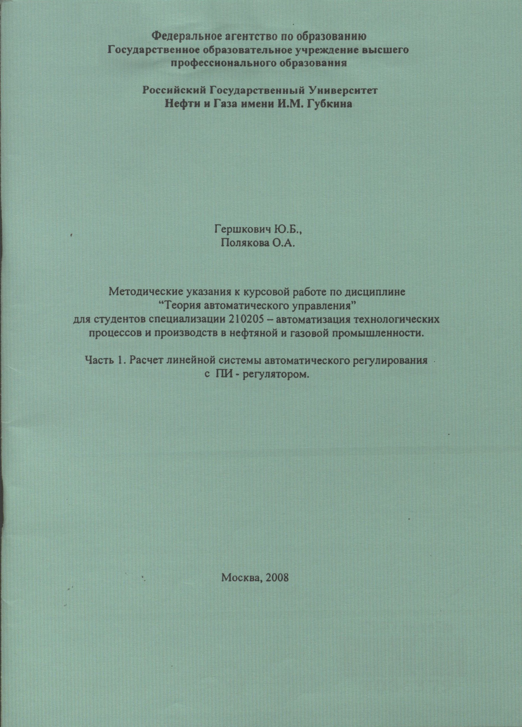 Методические указания к курсовой работе по дисциплине "Теория автоматического управления". Ч. 1. Расчет линейной системы автоматического регулирования с ПИ-регулятором