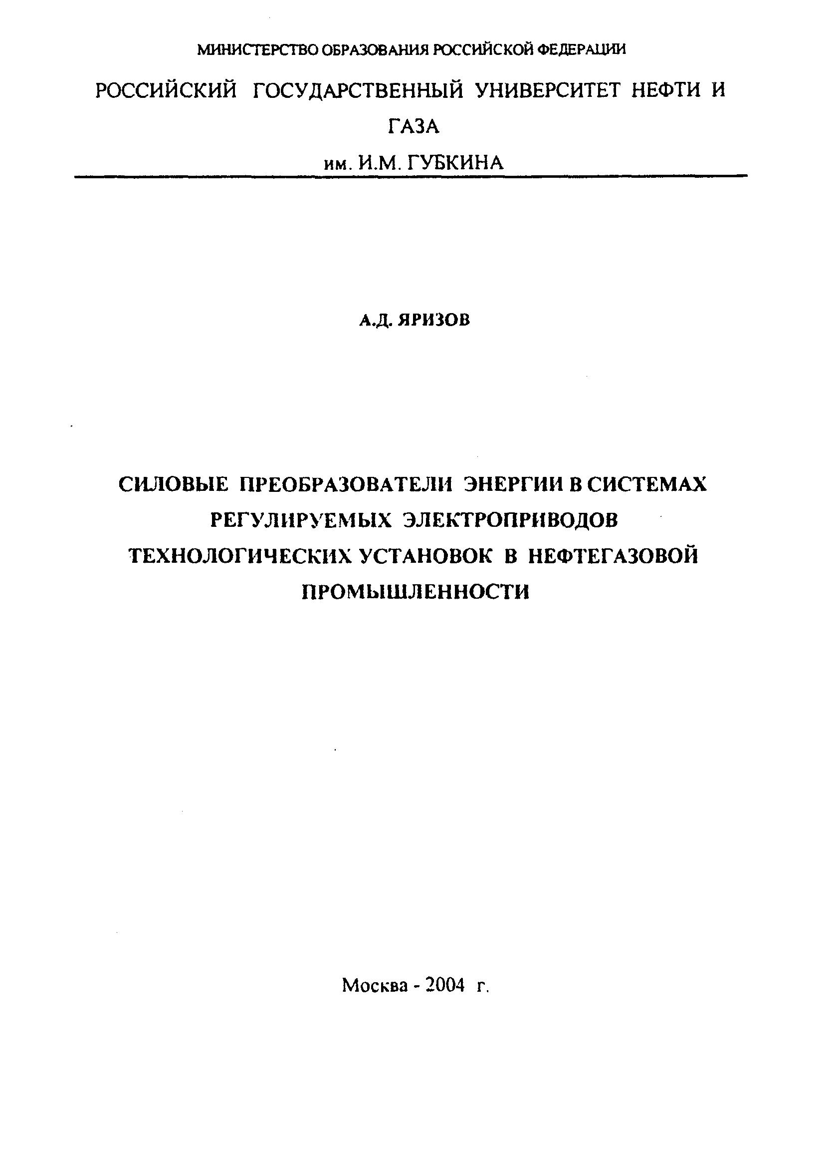 ЭЛЕКТРОПРИВОДЫ ТЕХНОЛОГИЧЕСКИХ УСТАНОВОК