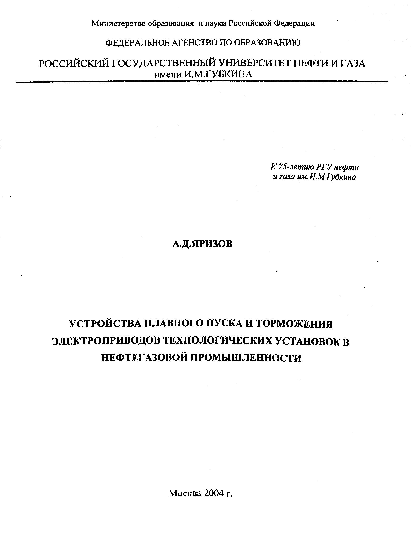 "Устройства плавного пуска и торможения электроприводов технологических установок в нефтегазовой промышленности" (PDF - 1.92 Мб)