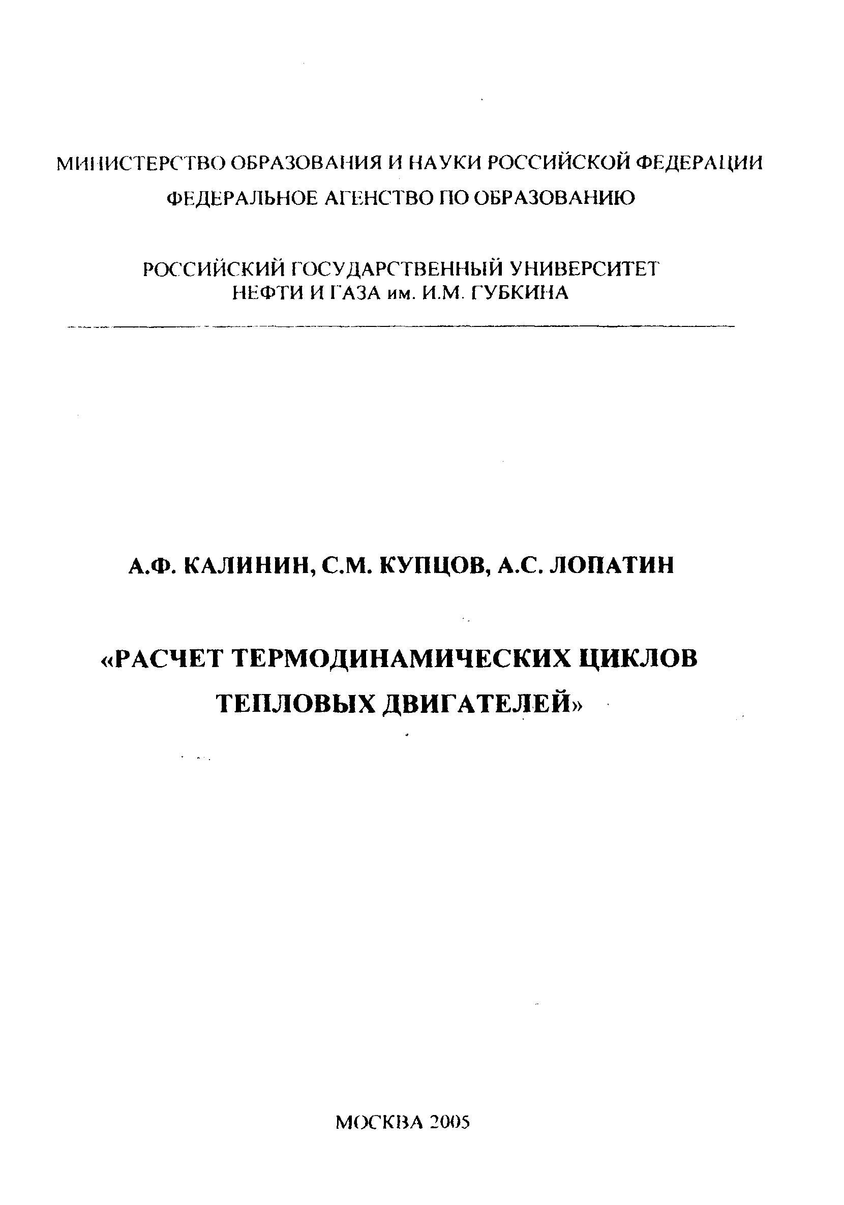 Расчет термодинамических циклов тепловых двигателей
