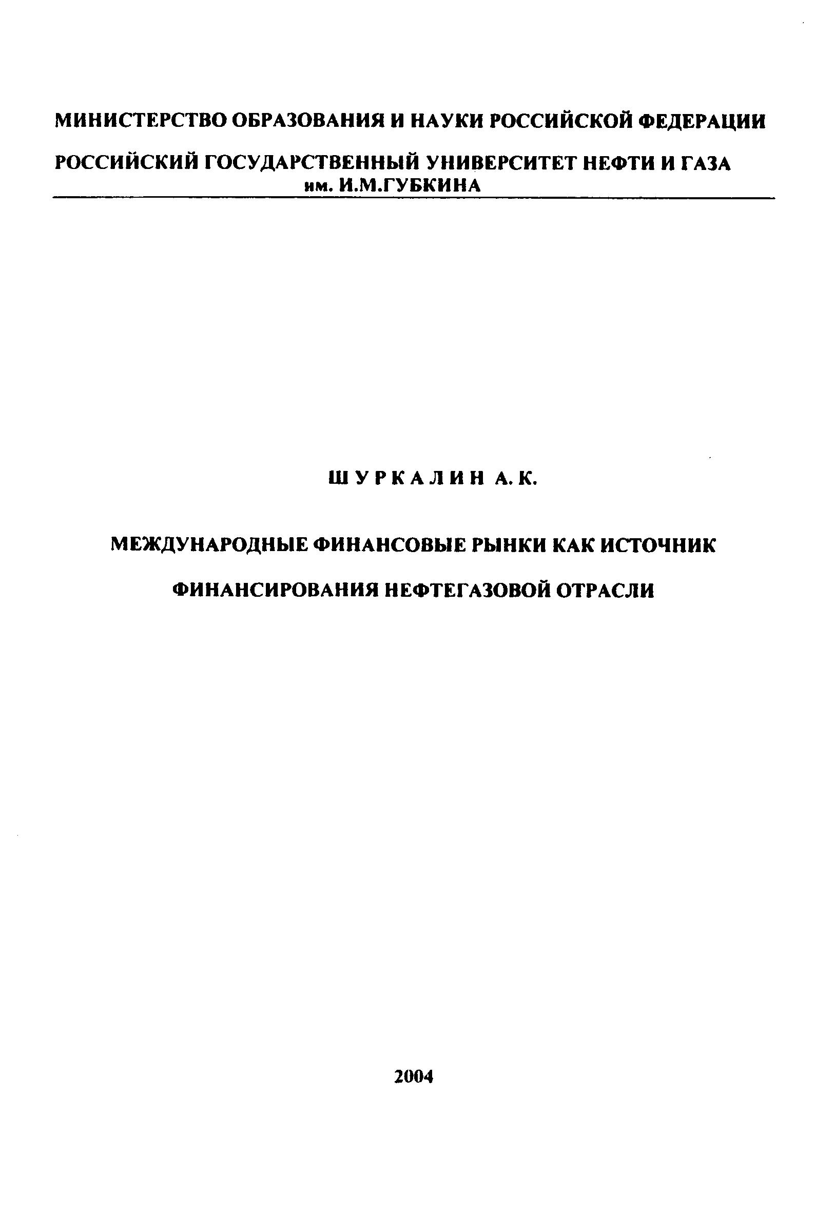 "Международные финансовые рынки как источник финансирования нефтегазовой отрасли" (PDF - 4.23 Мб)