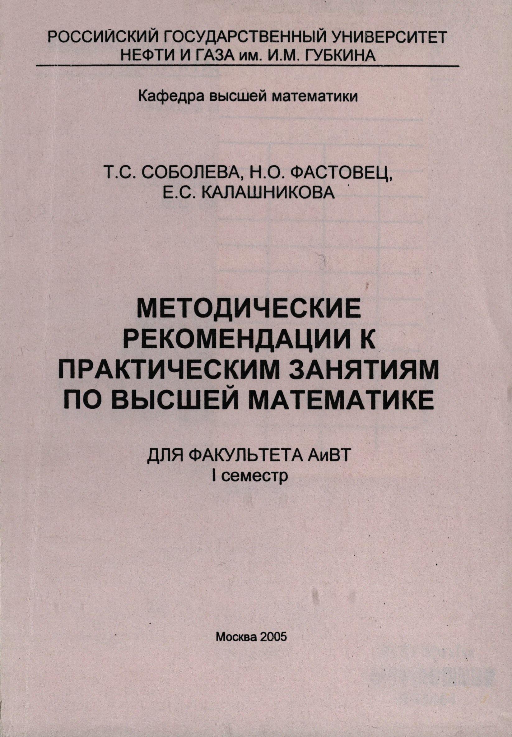 Методические рекомендации к практическим занятиям по высшей математике. Для факультета АиВТ. 1 семестр