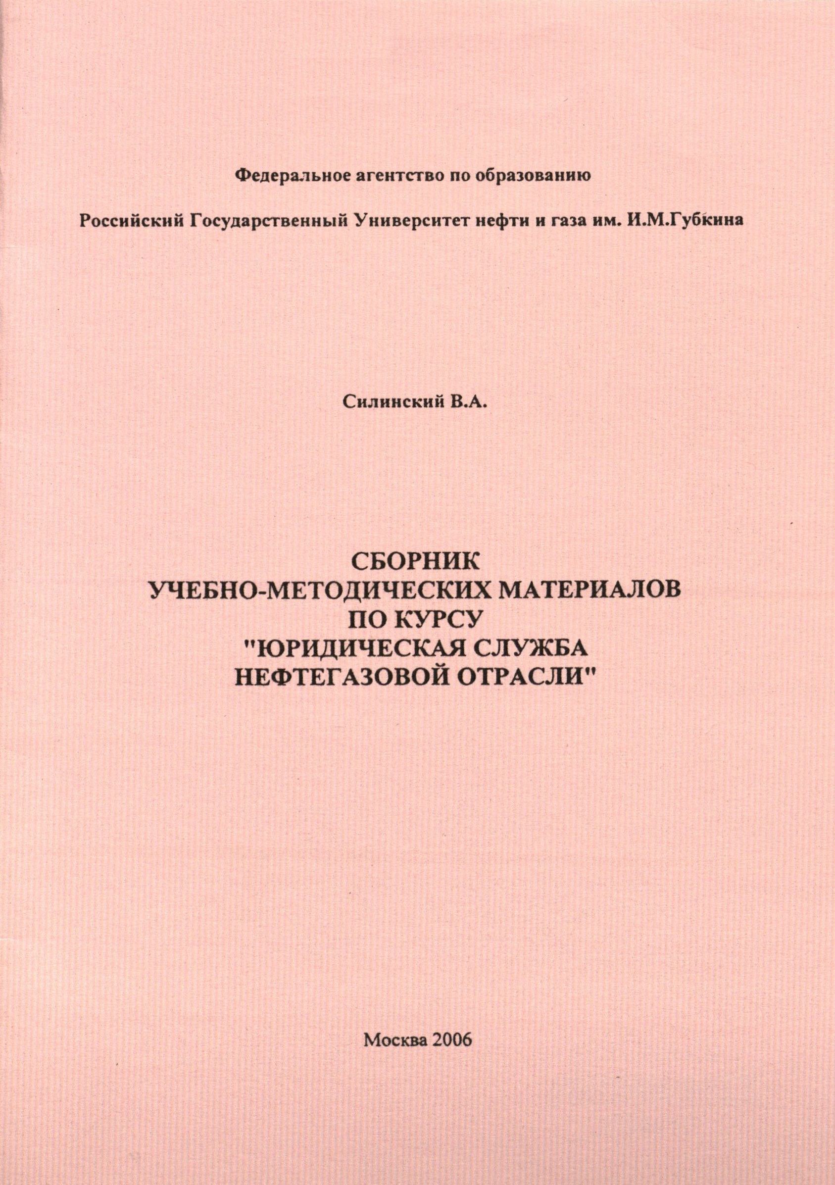 "Сборник учебно-методических материалов по курсу "Юридическая служба нефтегазовой отрасли"" (PDF - 0.28 Мб)