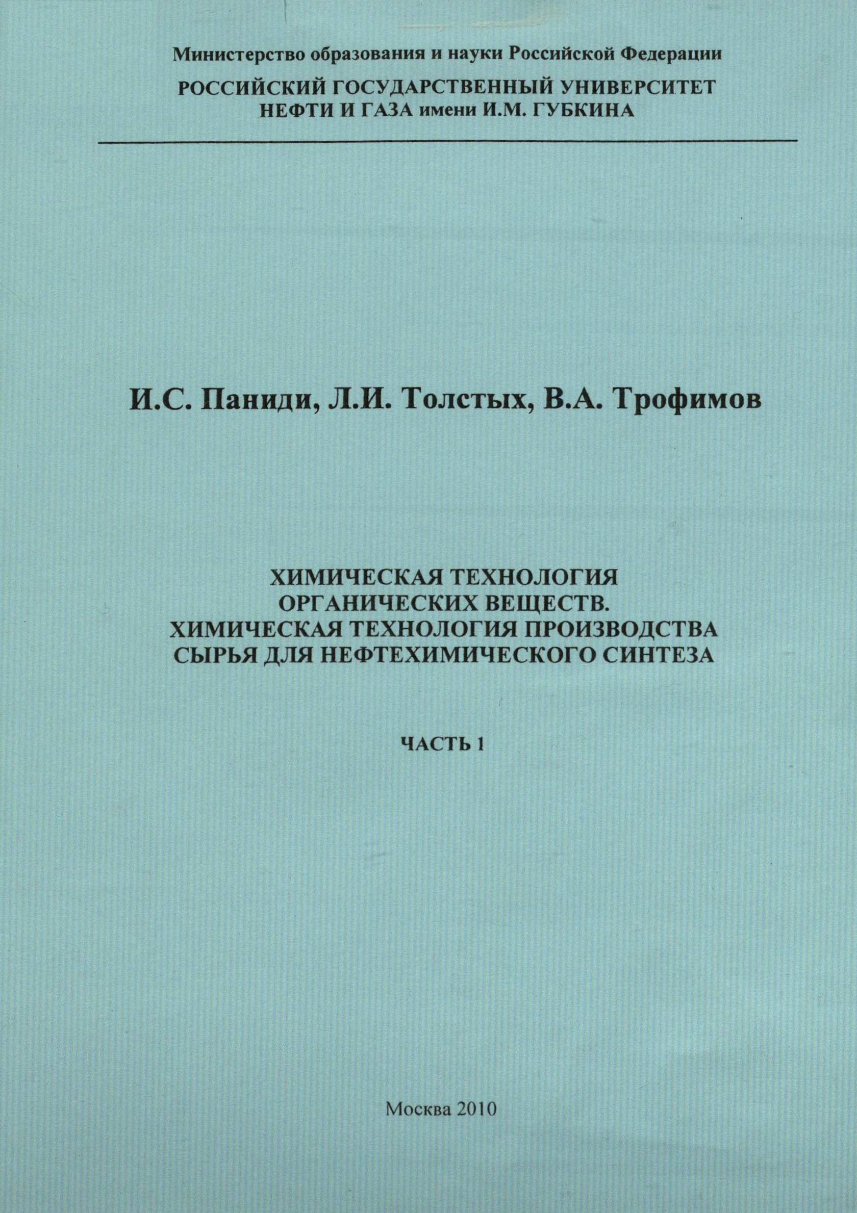 "Химическая технология органических веществ. Химическая технология производства сырья для нефтехимического синтеза" (PDF - 0.65 Мб)