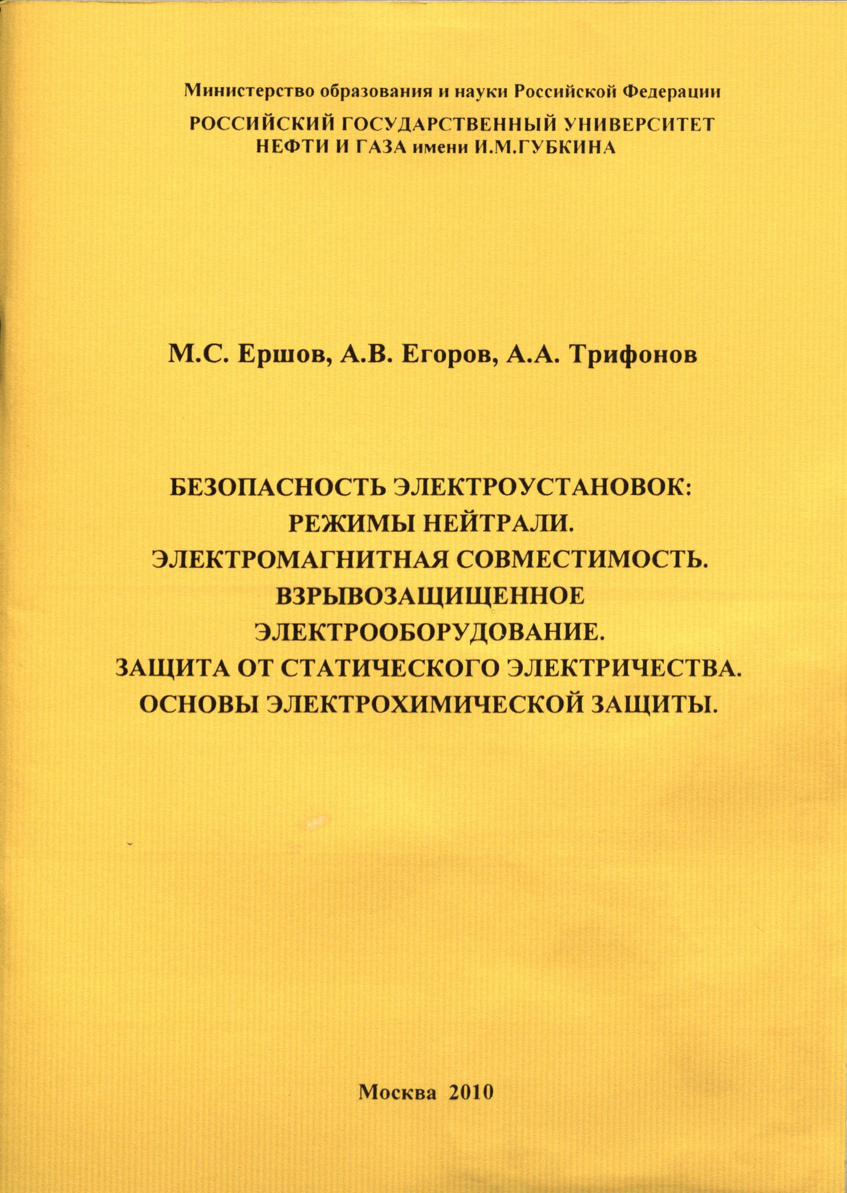 "Безопасность электроустановок. Режимы нейтрали. Электромагнитная совместимость. Взрывозащищенное оборудование. Защита от статического электричества. Основы электрохимической защиты" (PDF - 0.55 Мб)