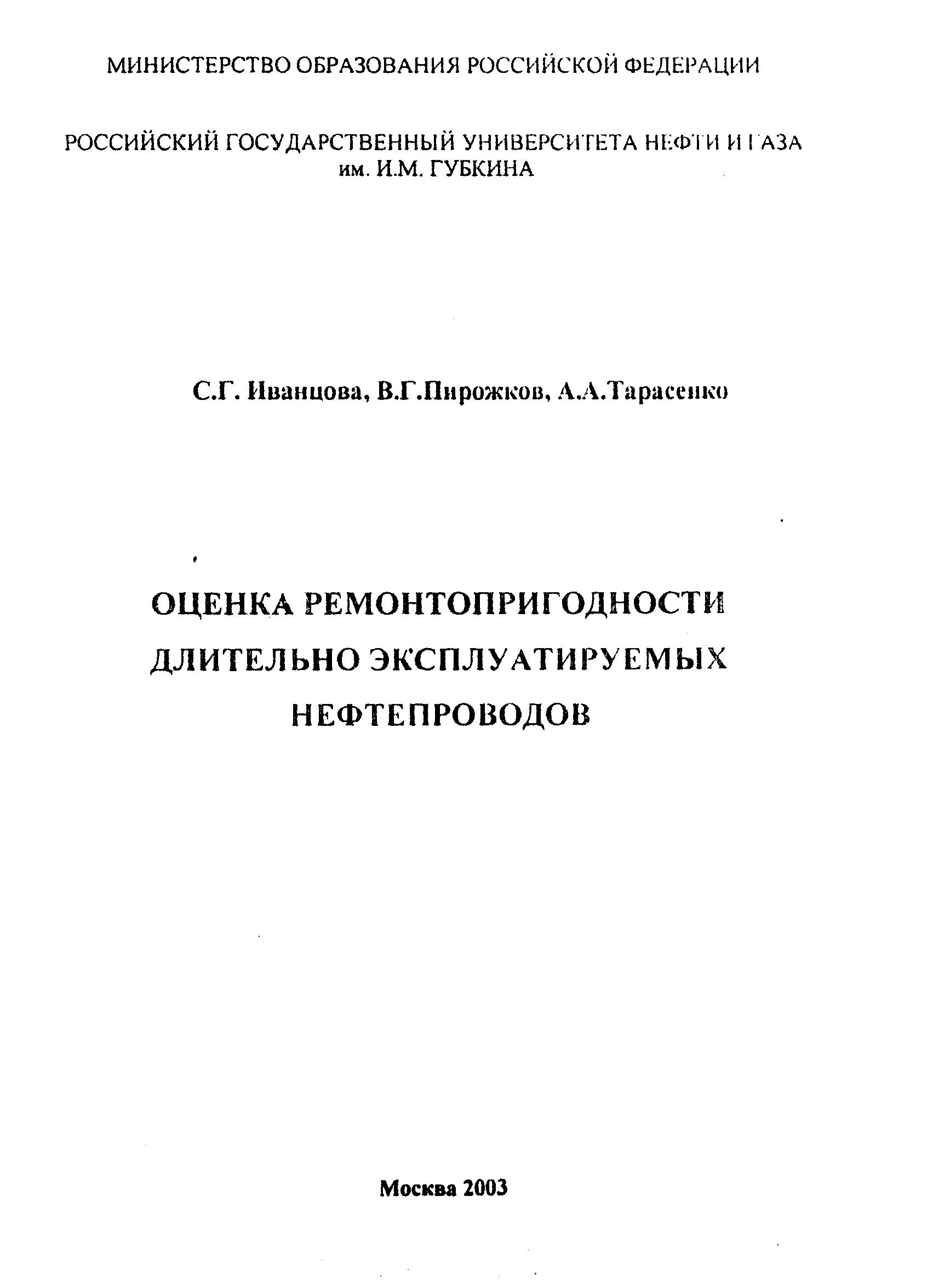 • "Оценка ремонтопригодности длительно эксплуатируемых нефтепроводов" (PDF - 2.5 Мб)
