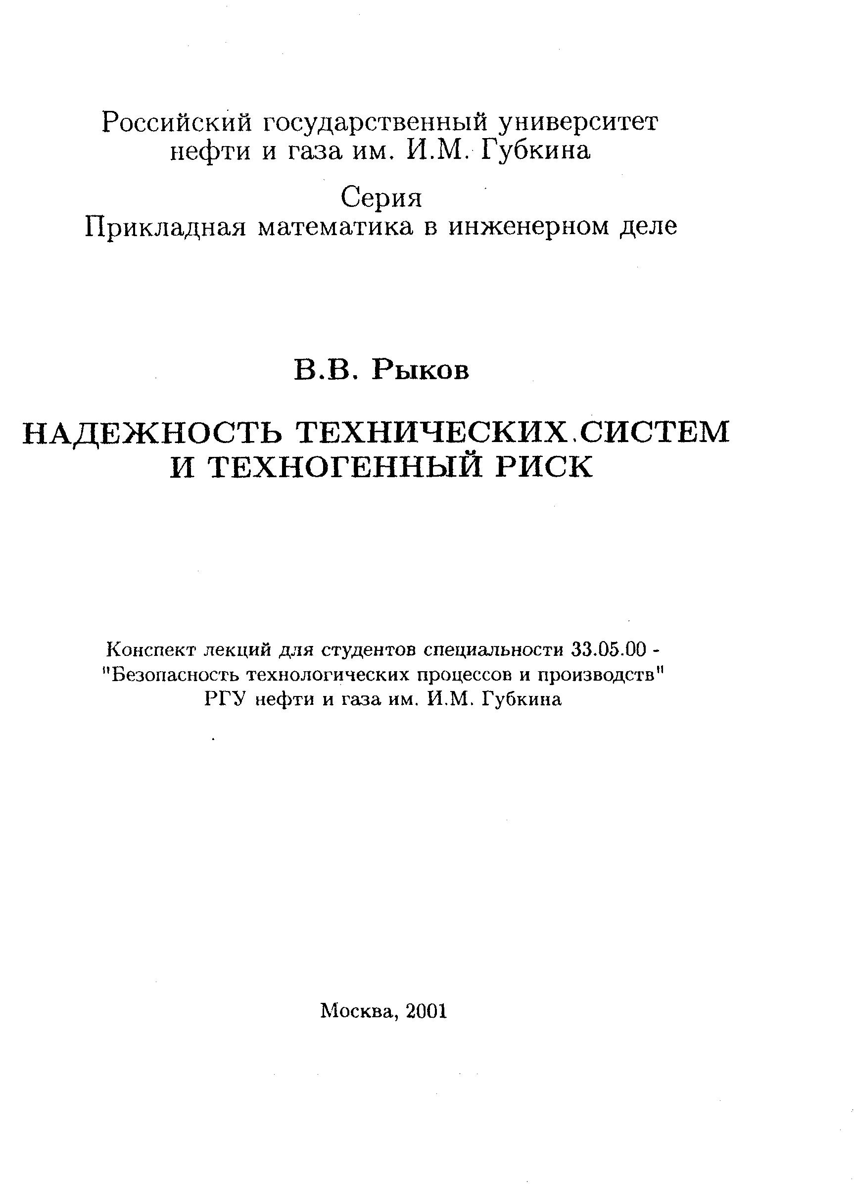 "Надежность технических систем и техногенный риск" (PDF - 3.88 Мб)