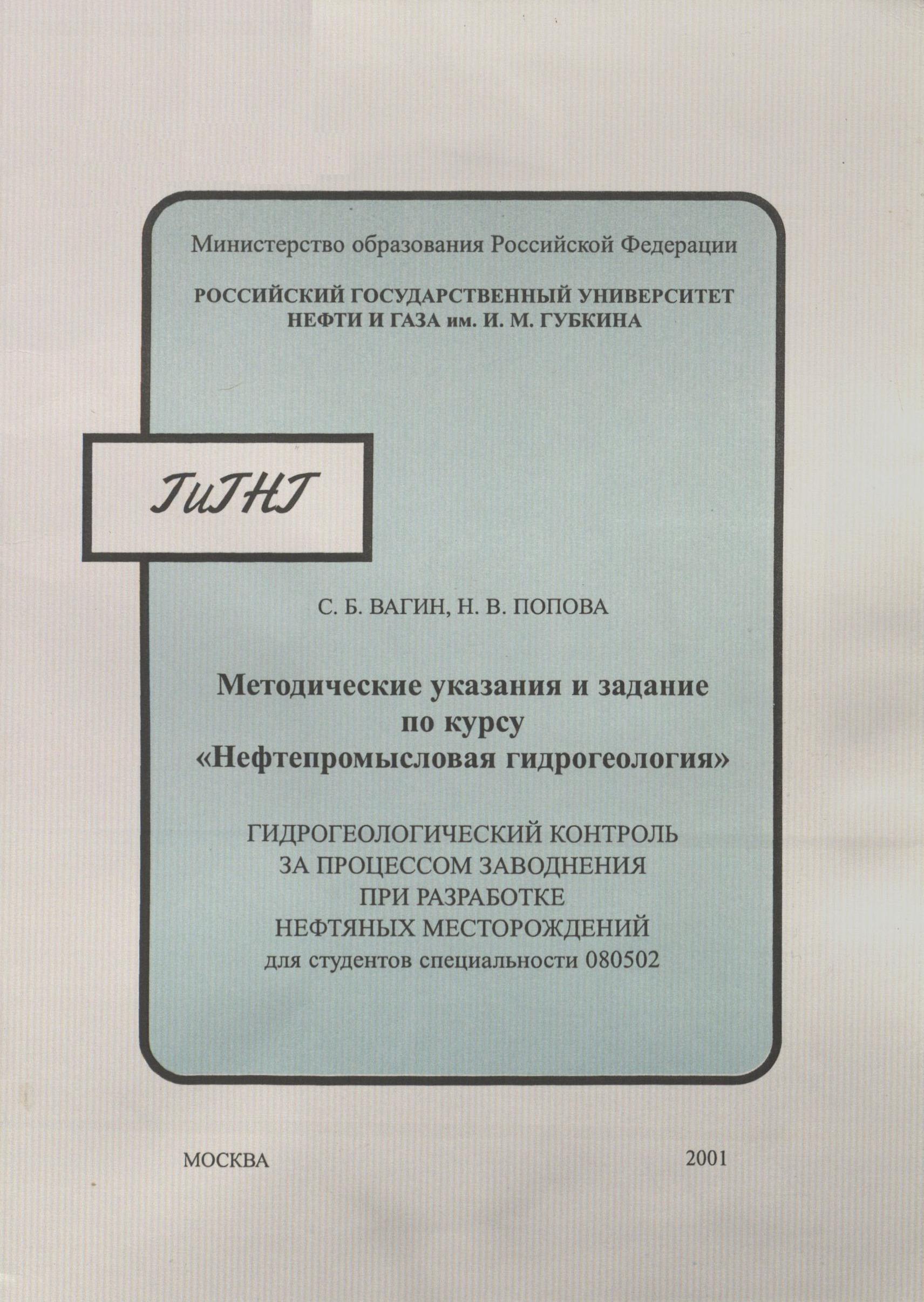Методические указания по курсу «Нефтегазопромысловая гидрогеология» составлены с целью дать возможность обучающимся ознакомиться с основными этапами гидрогеологического контроля за процессом заводнения при разработке нефтяных месторождений.