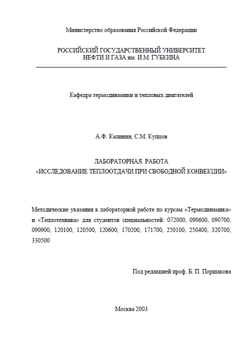"Исследование теплоотдачи при свободной конвекции" (PDF - 0.39 Мб)
