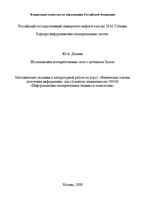 "Исследование измерительных схем с датчиком Холла" (PDF - 0.28 Мб)