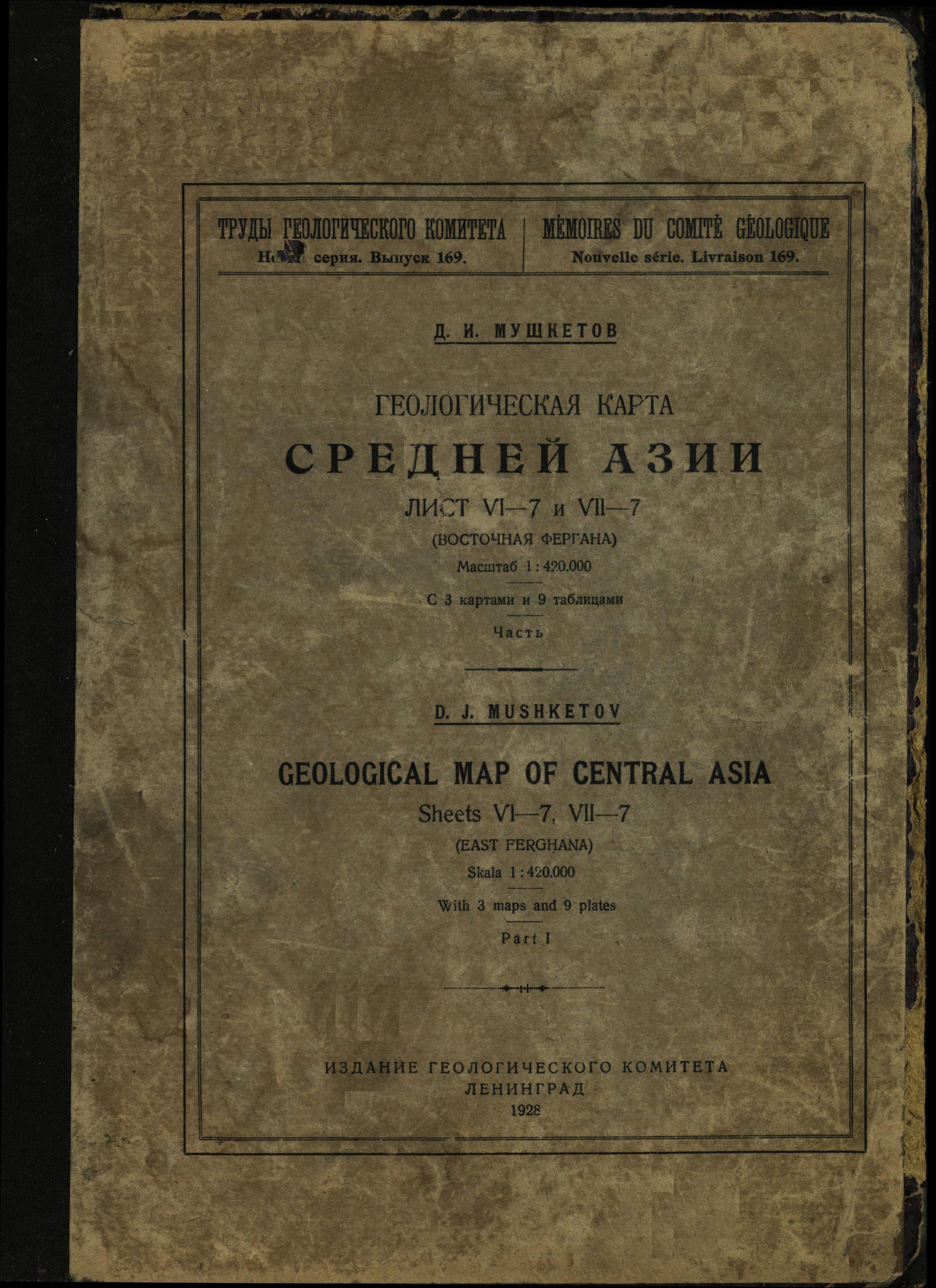 Геологическая карта Средней Азии. Лист VI -7 и VII-7 (Восточная Фергана). Вып. 169. Ч. 1