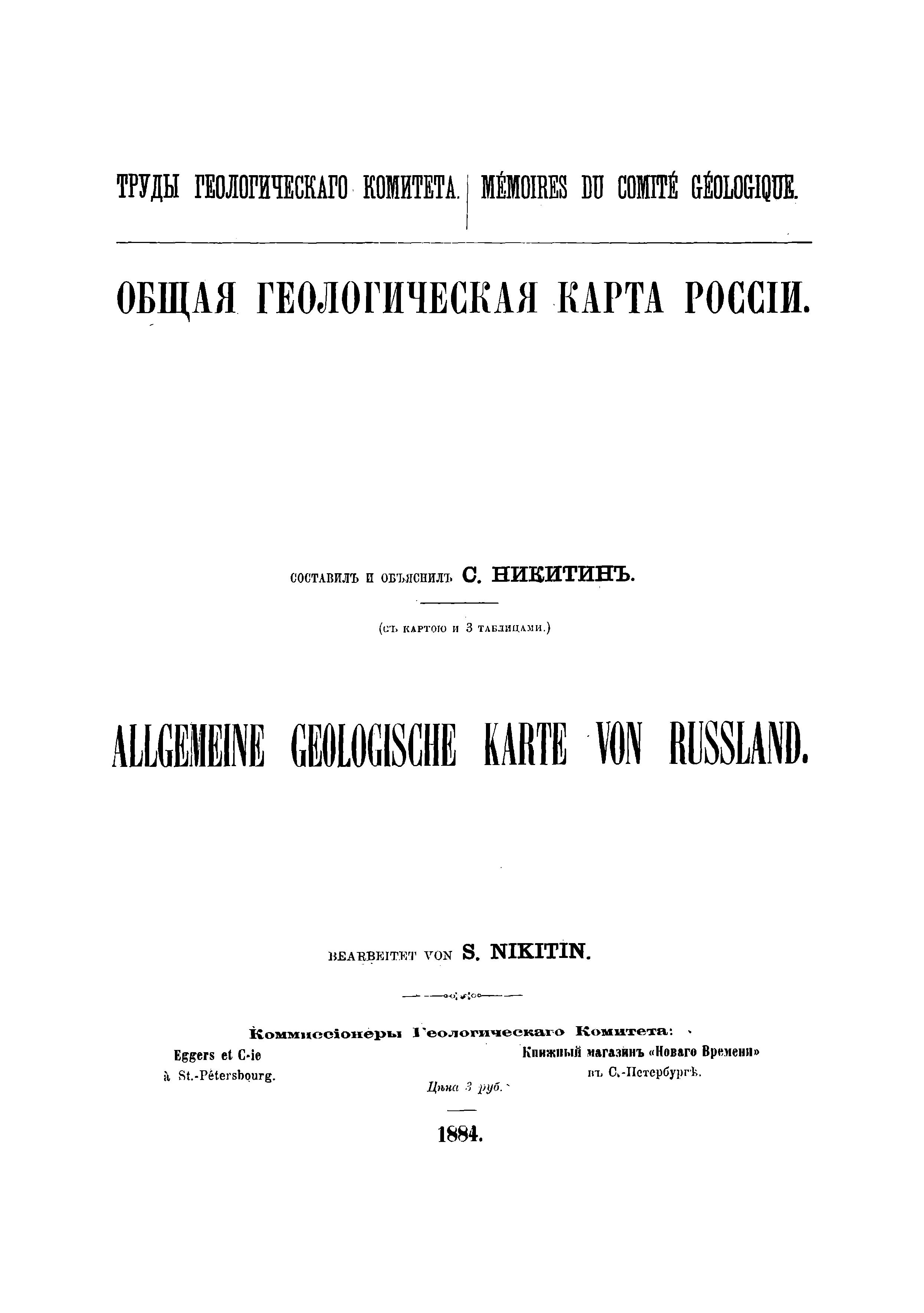 Общая геологическая карта Россiи. Т. 1, № 2: Листъ 56-й. Ярославль, Ростовъ, Калязинъ, Весьегонскъ, Пошехонье. Т. 2, № 1: Листъ 71-й. Кострома, Макарьевъ (на Унже), Чухлома, Любимъ