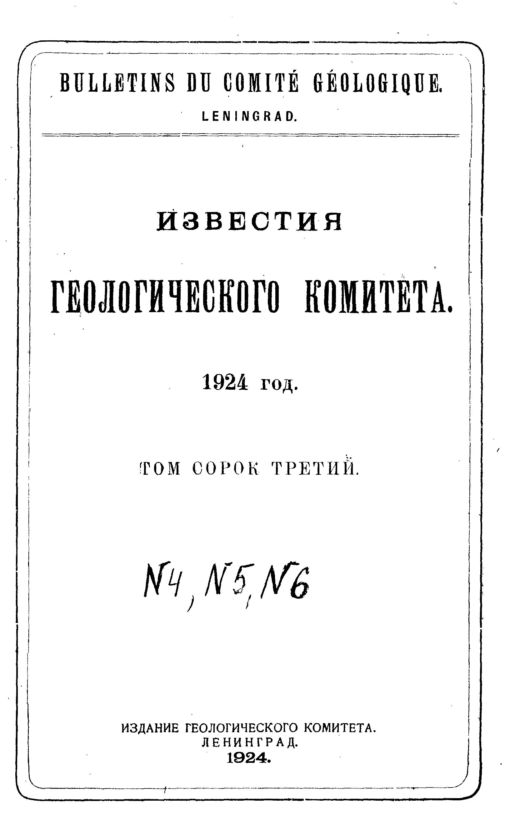 Известия Геологического комитета. 1924 г. Т. 43. № 4-6