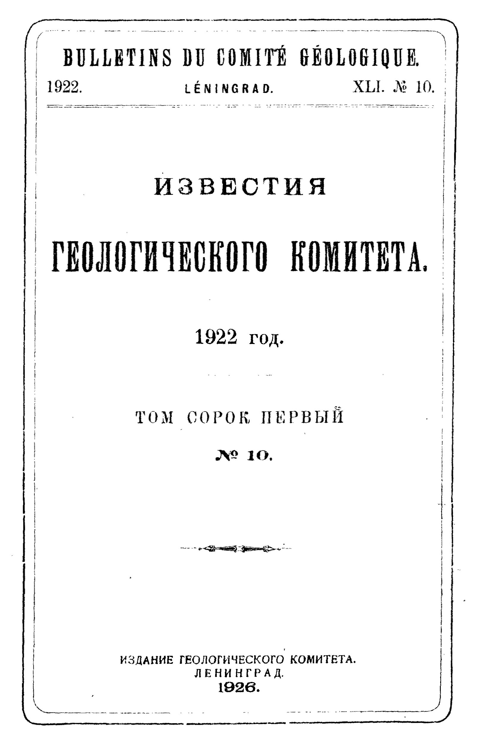 Известия Геологического комитета. 1922 г.. Т. 41. № 10