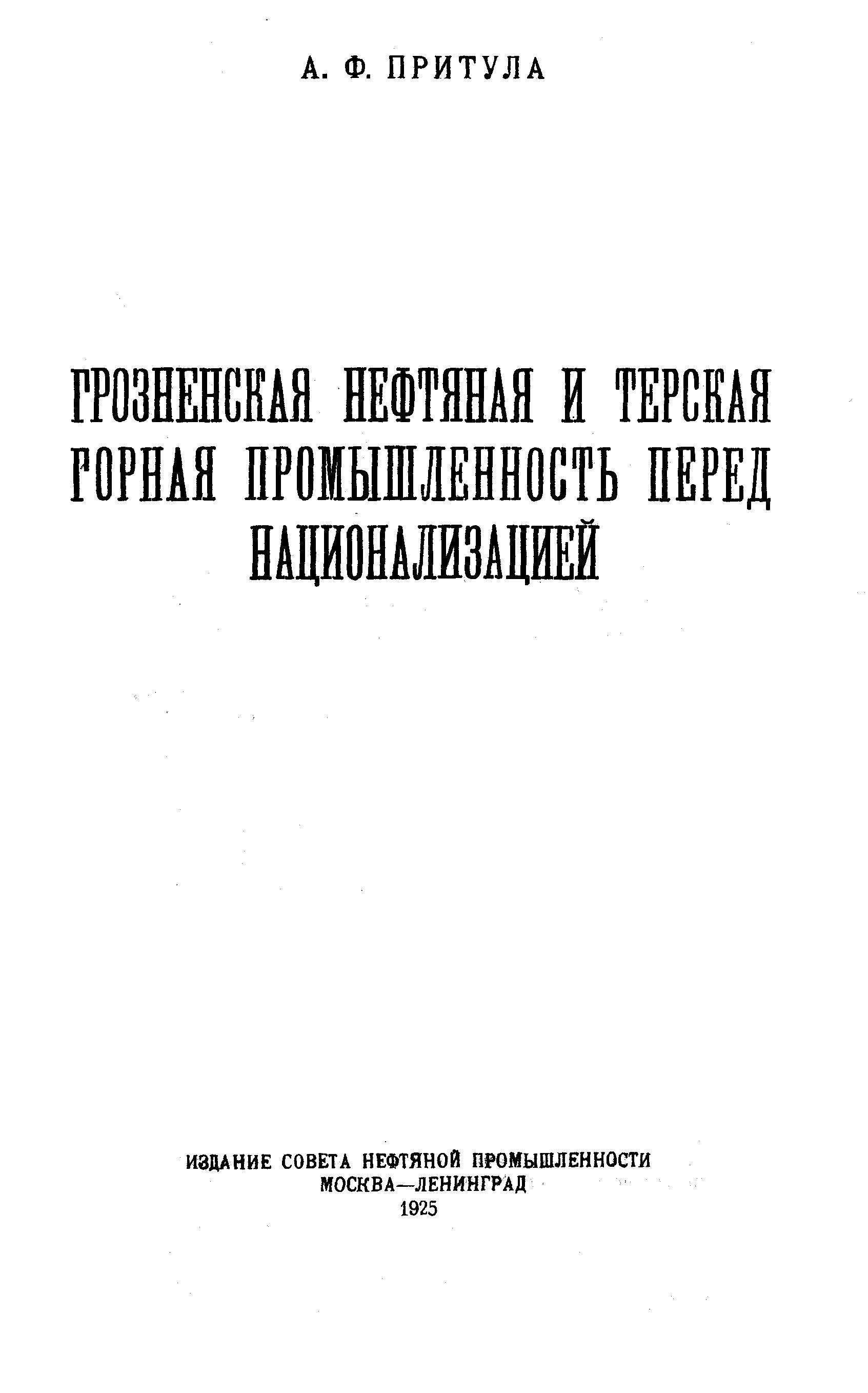 • "Грозненская нефтяная и терская горная промышленность перед национализацией" (PDF - 7.18 Мб)