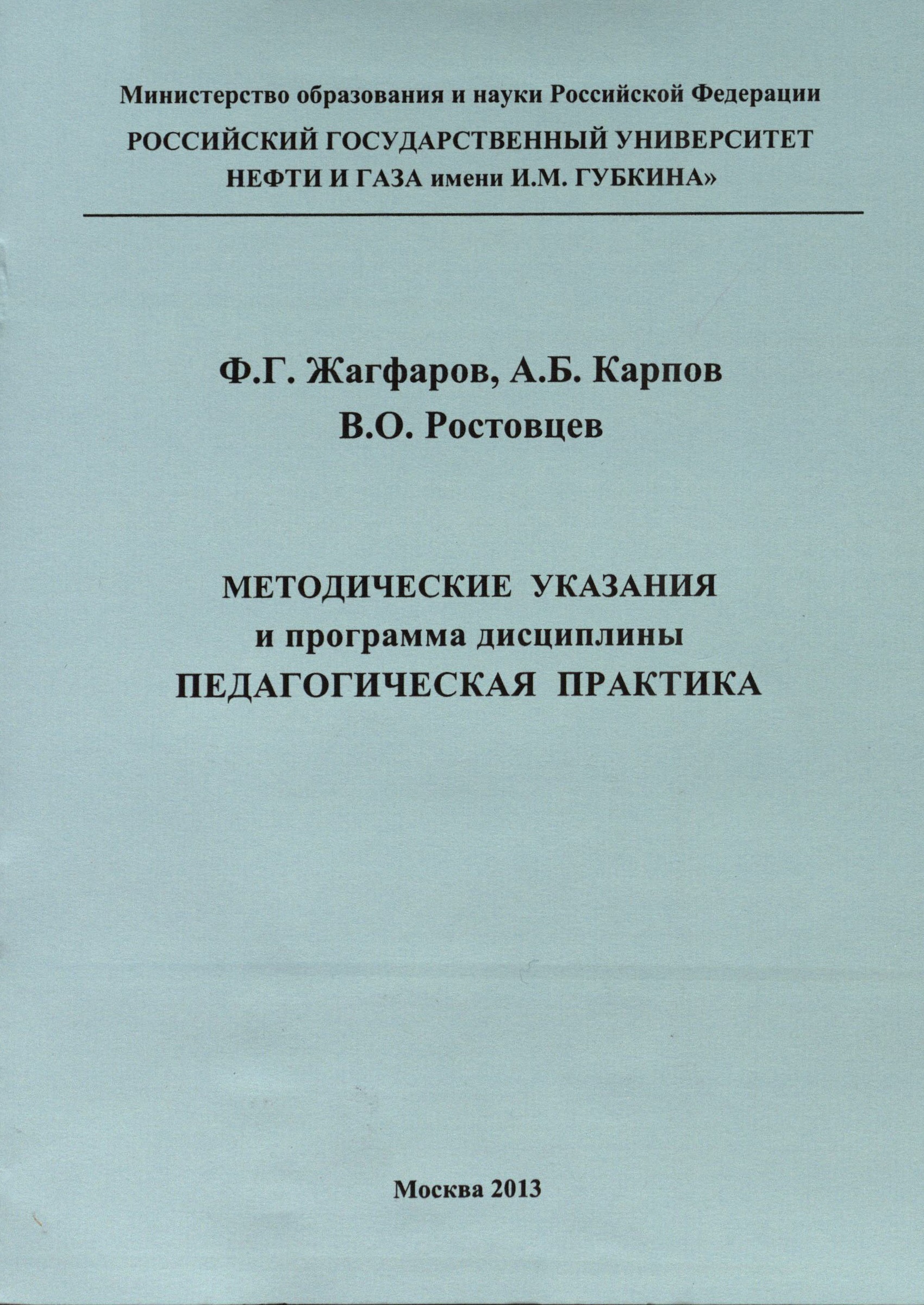 Методические указания по педагогической практике предназначены для магистрантов, обучающихся по направлению 240100 «Химическая технология» и разработаны на основе рабочей программы дисциплины «Педагогическая практика». Они учитывают также опыт организации и проведения педагогических практик на факультете химической технологии и экологии РГУ нефти и газа имени И. М. Губкина.