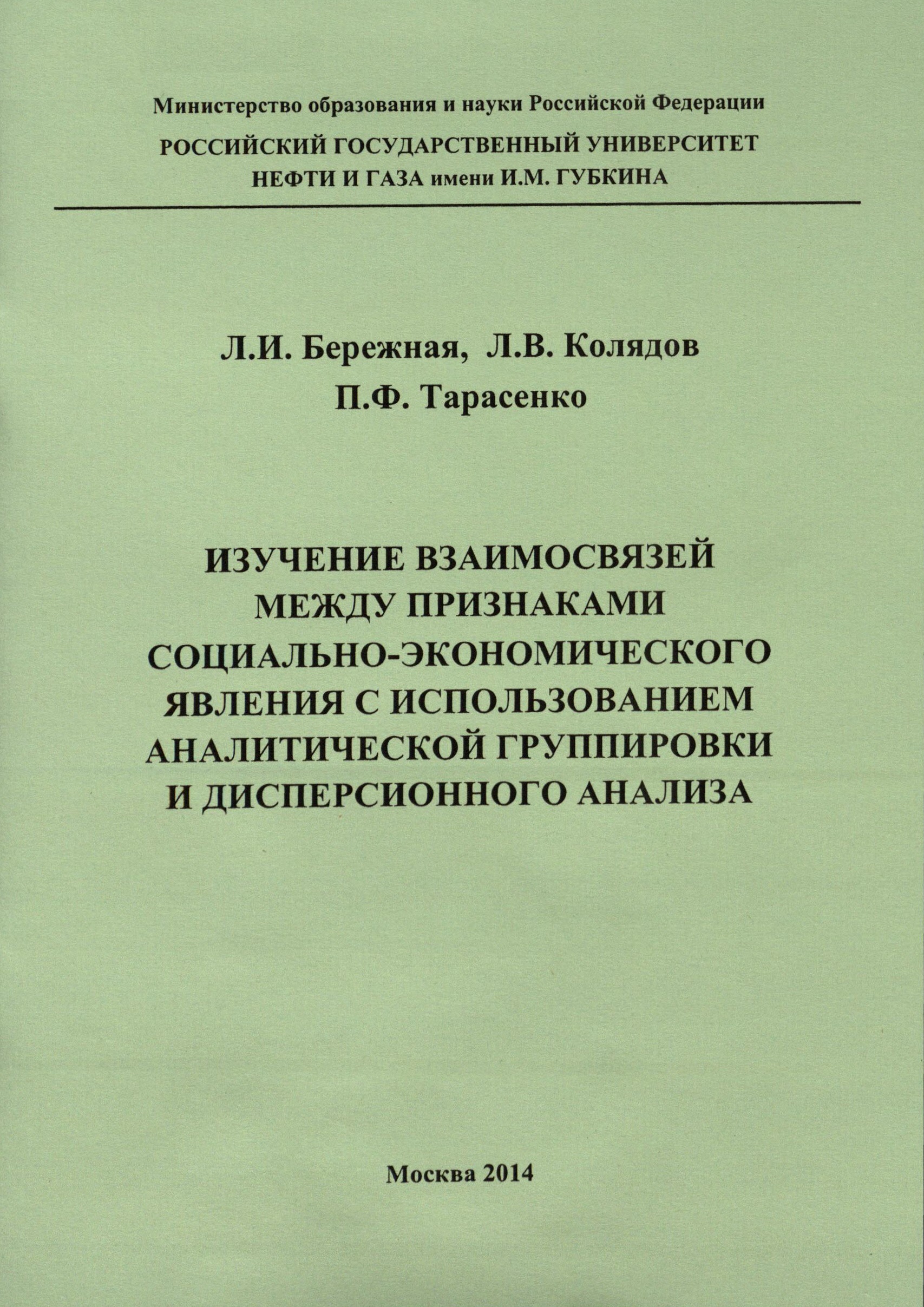 "Изучение взаимосвязей между признаками социально-экономического явления с использованием аналитической группировки и дисперсионного анализа" (PDF - 0.8 Мб)